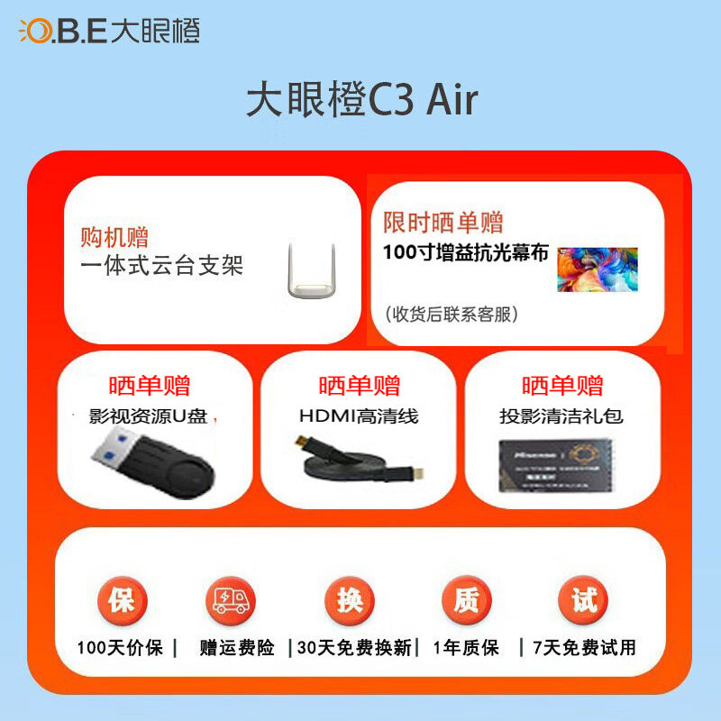 【买1送4发货超快】大眼橙C3 Air投影仪高亮家用高清1080P便携4K解码家庭影院卧室无需幕布