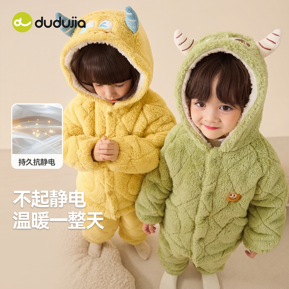 嘟嘟家儿童家居服套装冬季男童夹棉加厚睡衣女童保暖上衣裤子分体
