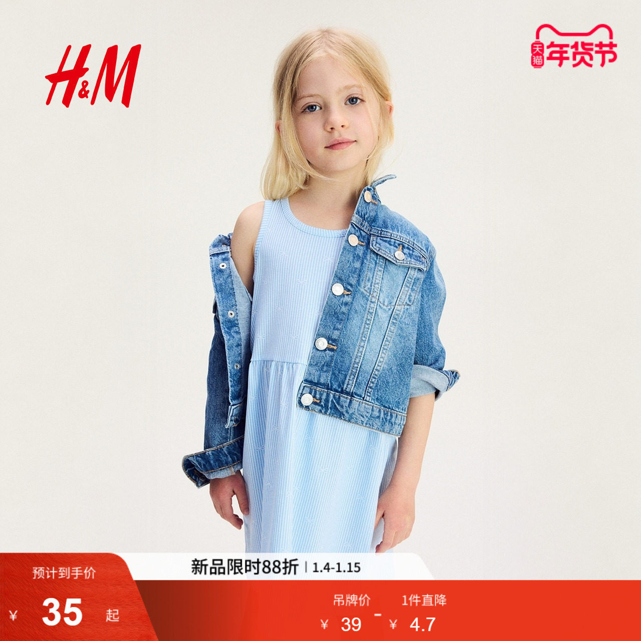 HM童装儿童女童中大童裙子冬季洋气无袖可爱度假裙1157735