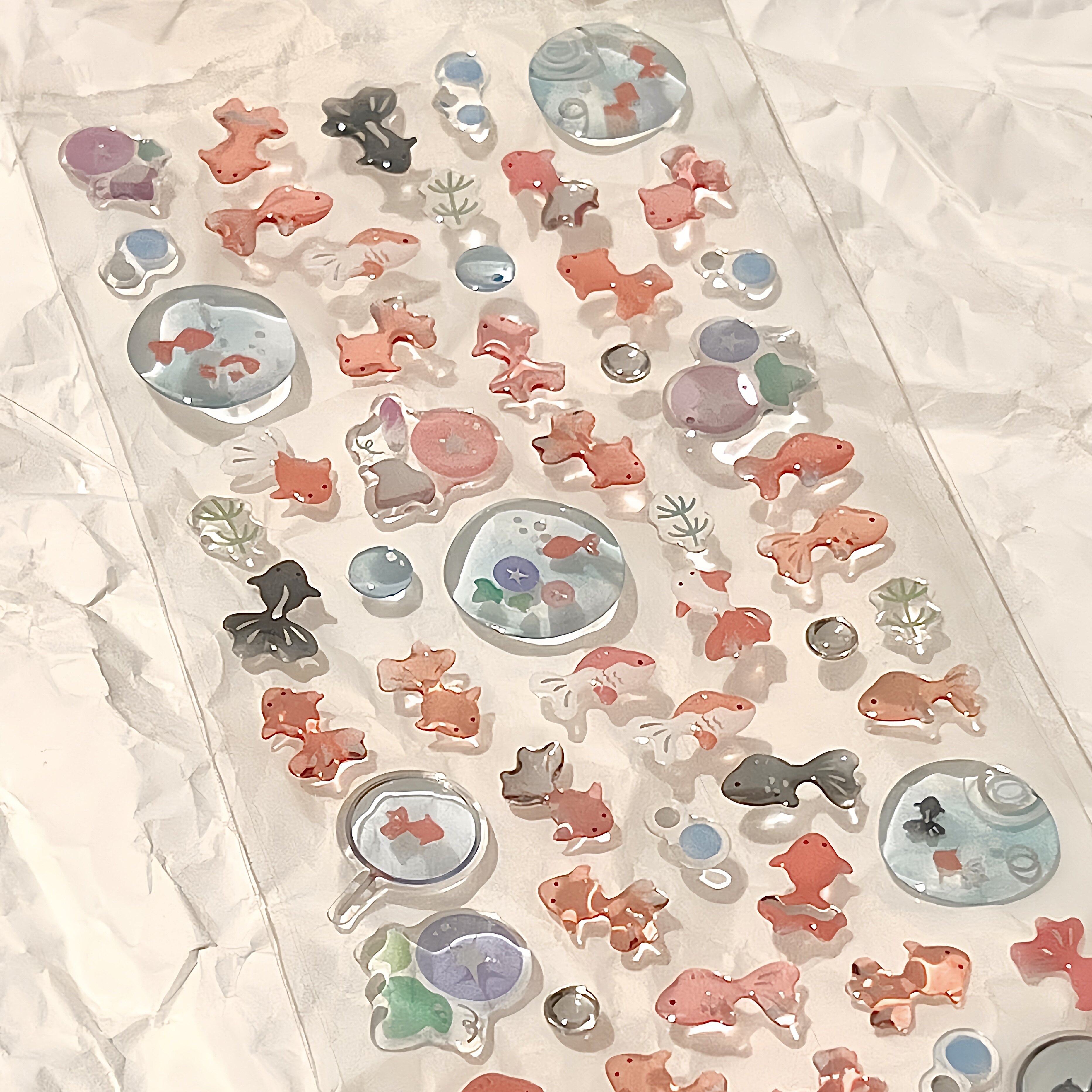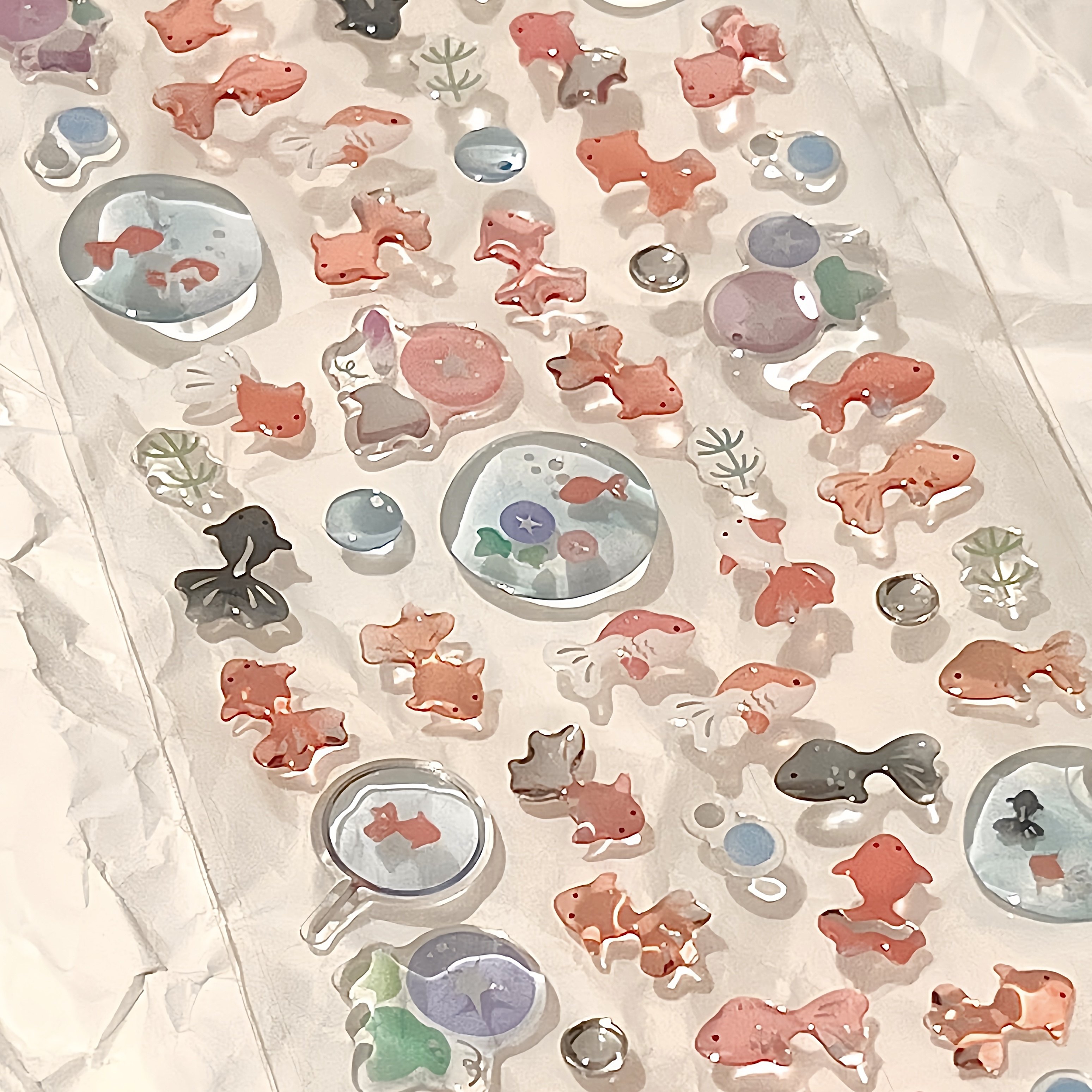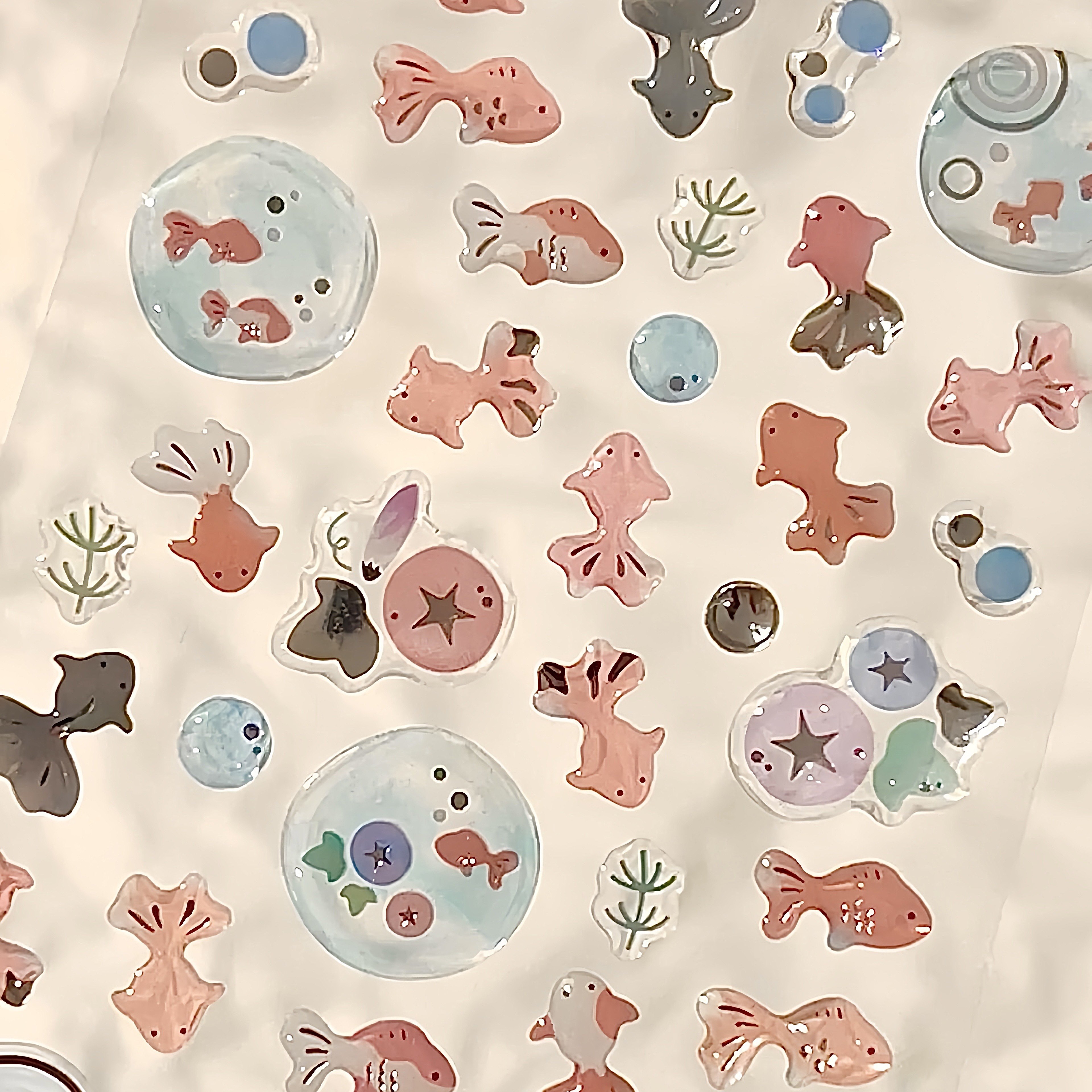 小红书同款金鱼手账贴纸可爱手工diy装饰素材贴画彩色咕卡ins手帐