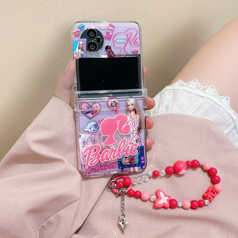ins日韩粉芭比娃娃适用于VIVOXFlip手机壳防摔全包vivoxflip折叠屏支架手链保护套辣妹女款