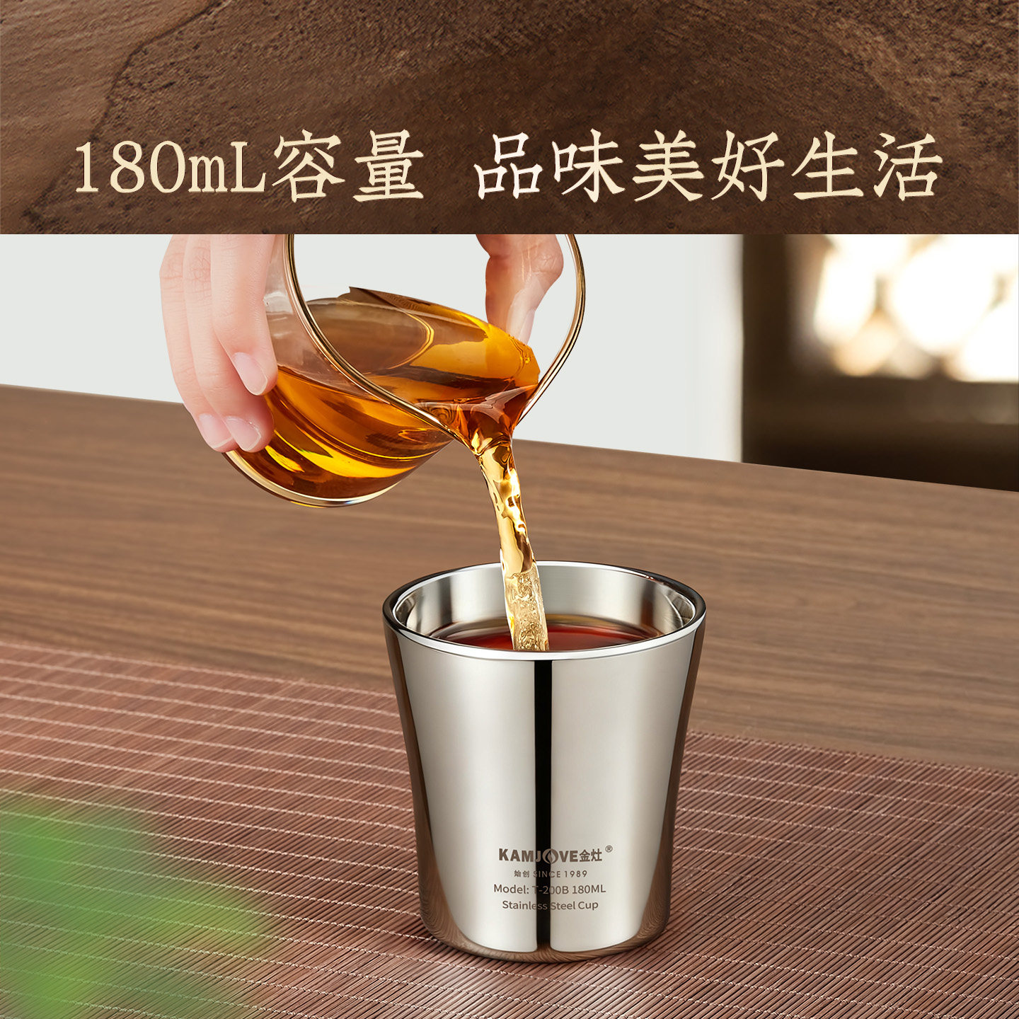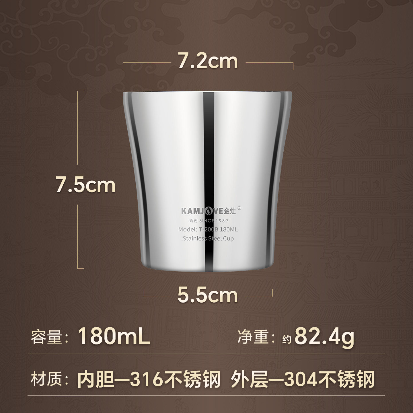 金灶T-200B功夫茶杯家用316不锈钢水杯办公室个人喝茶专用小杯