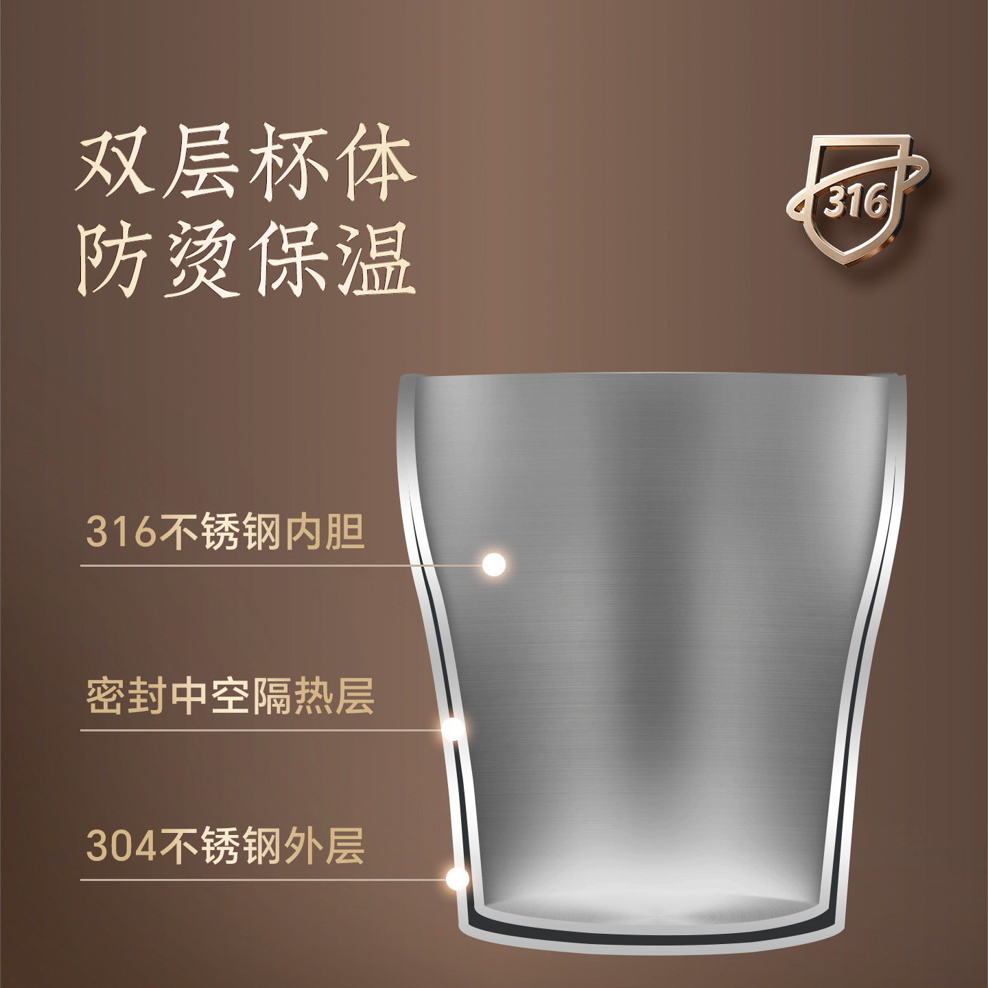 双层杯体 防烫保温 内胆一体成型 光滑无缝