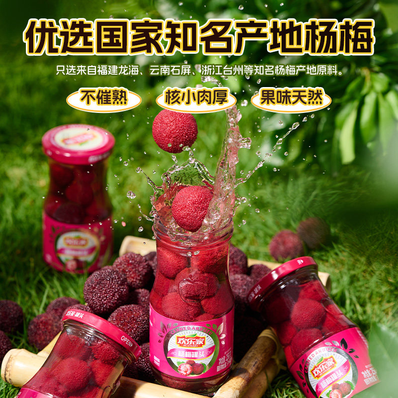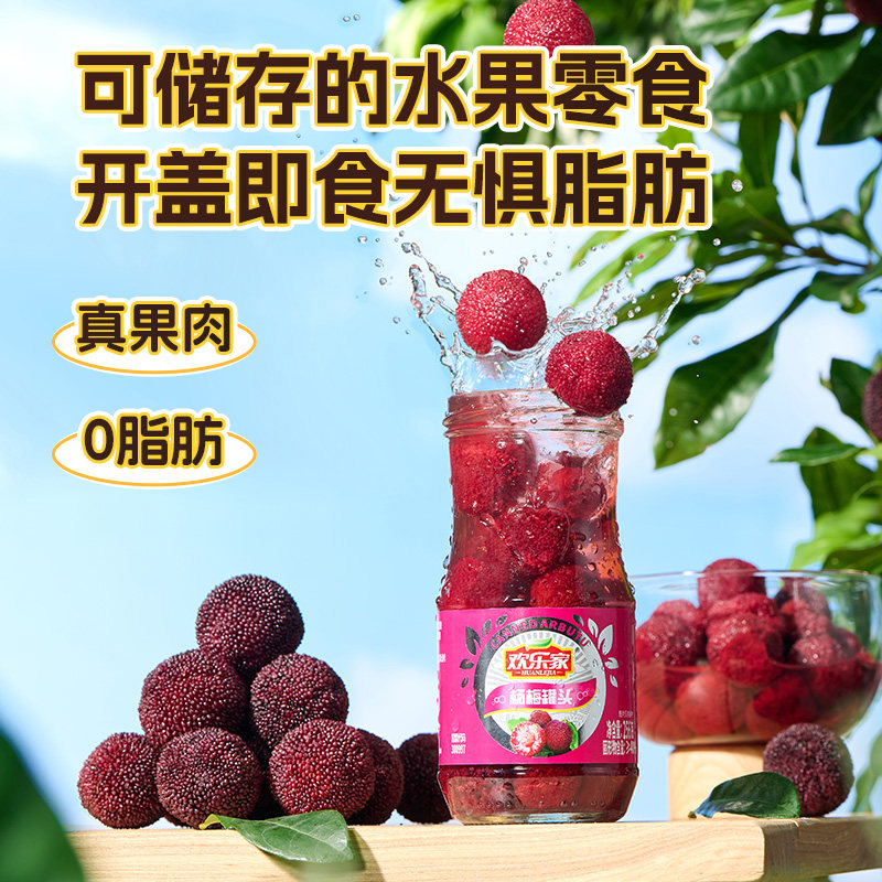 欢乐家 杨梅罐头256g*6瓶 糖水杨梅果肉水果罐头 休闲零食正品