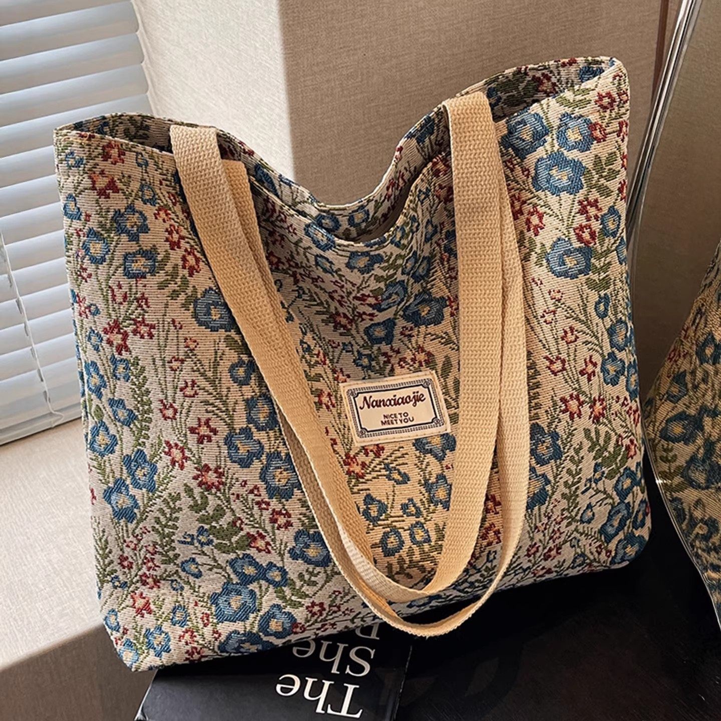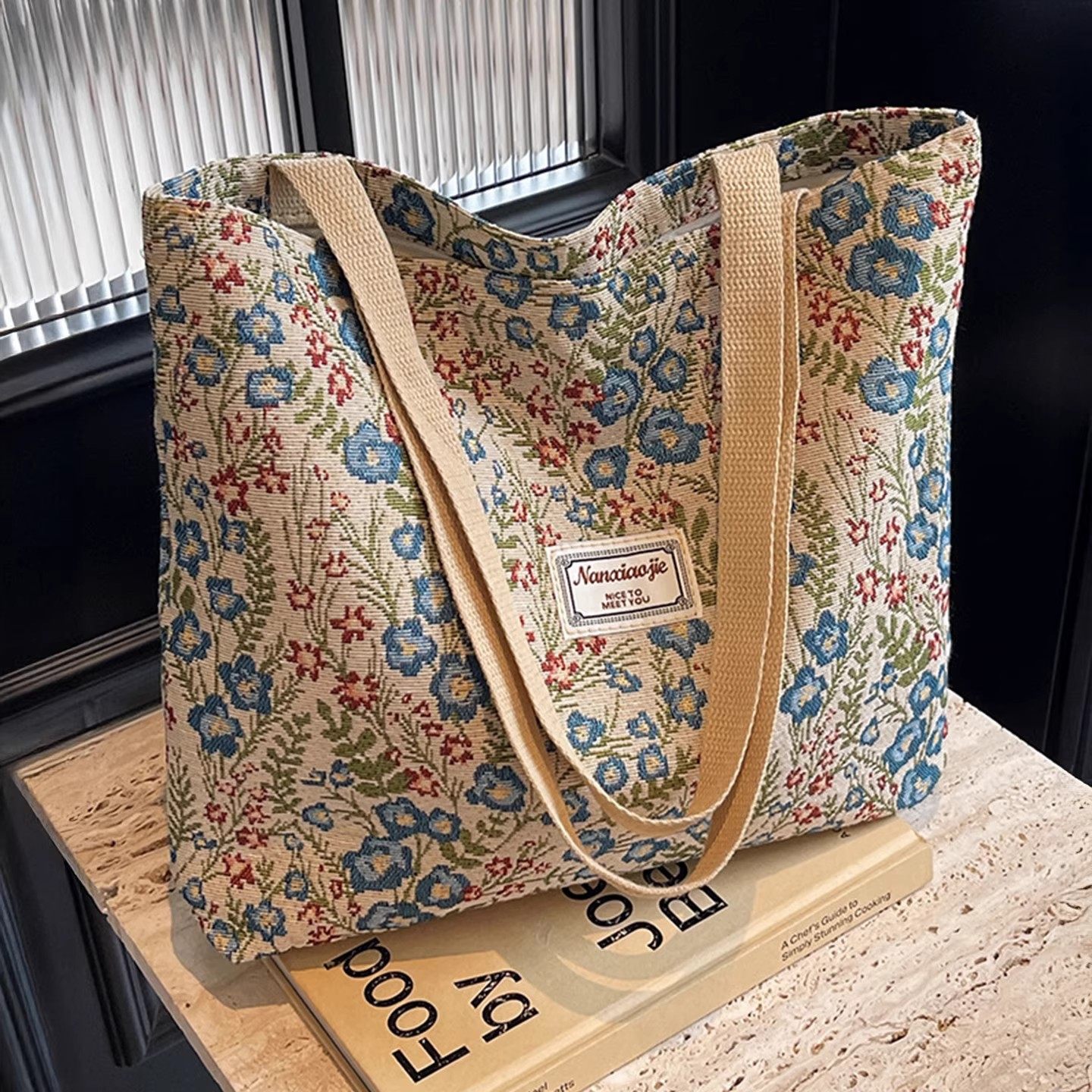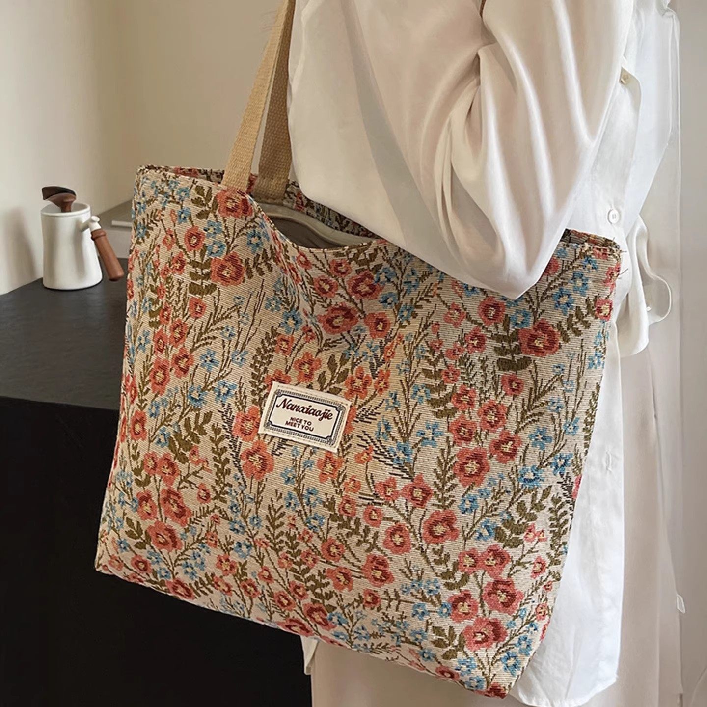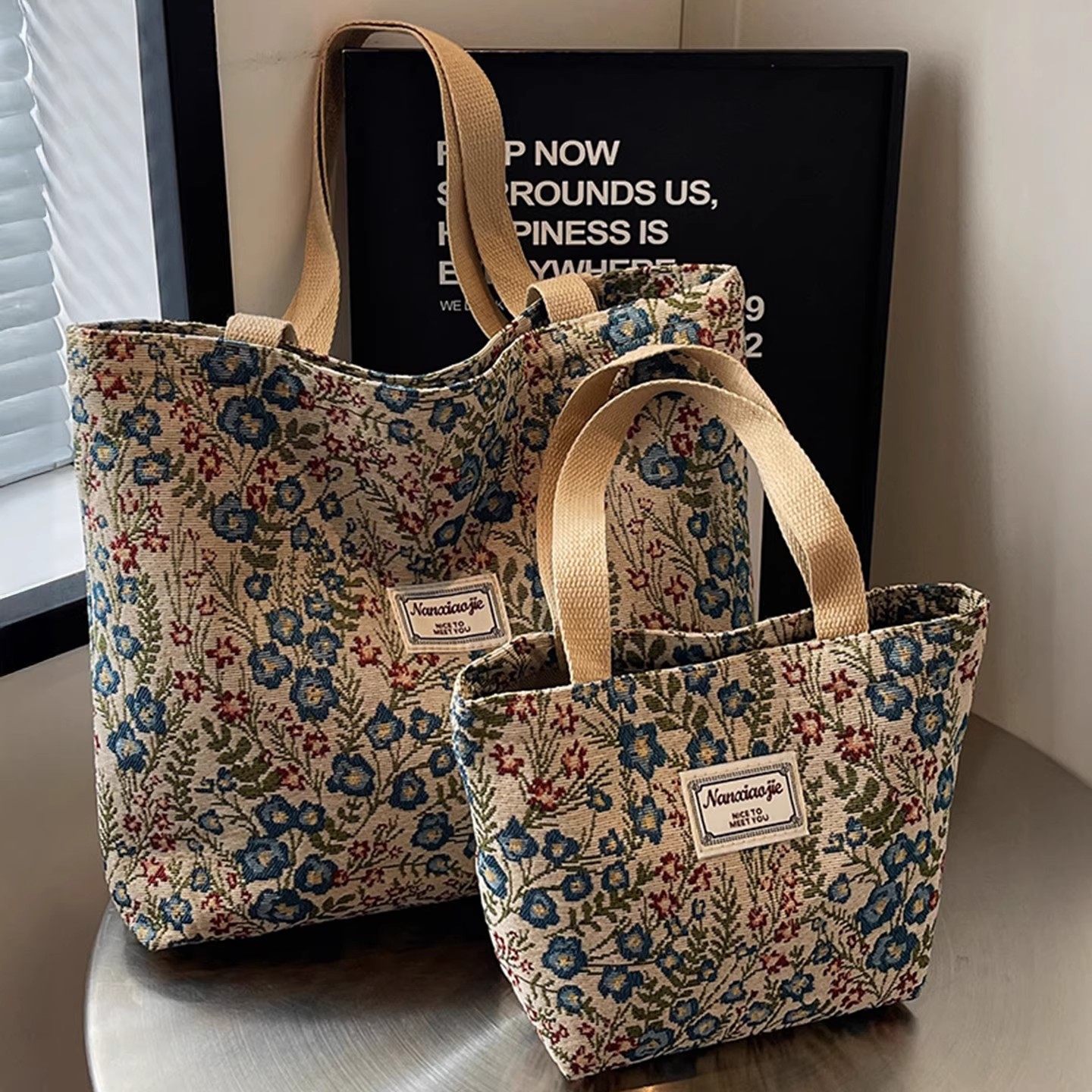 托特包女大容量2025新款手提袋上班通勤手提包碎花单肩帆布包结实