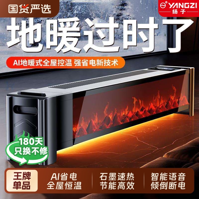 扬子踢脚线取暖器石墨烯暖风机语音加湿地暖电暖气2025年新款省电