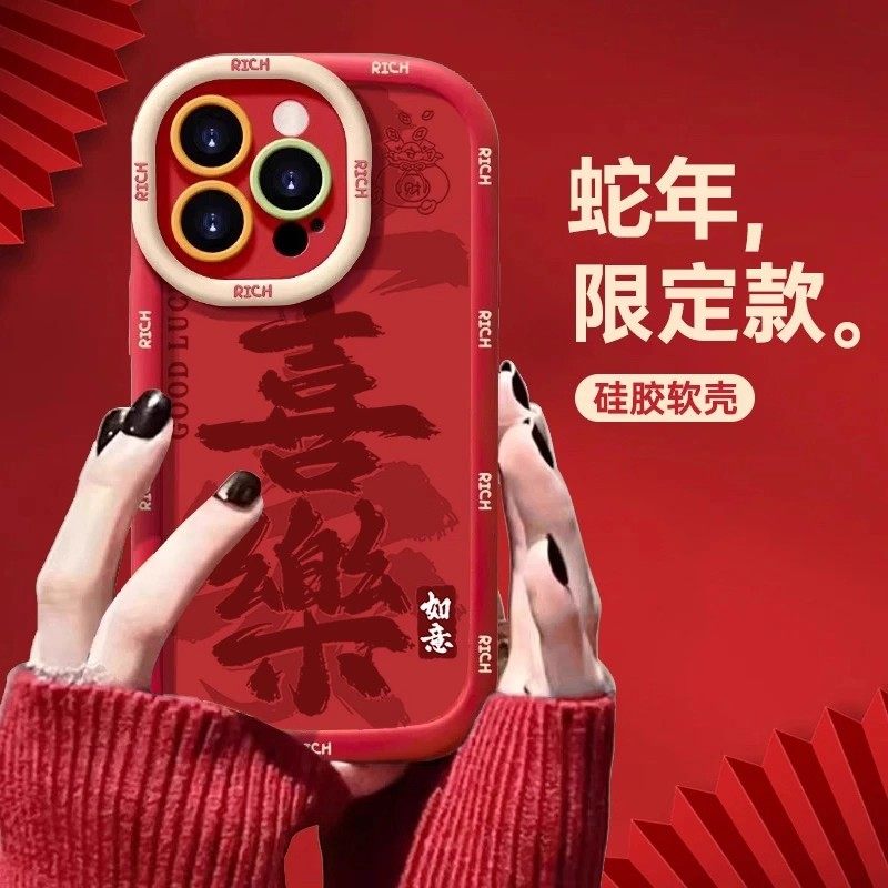泡芙喜乐文字适用苹果17/16promax手机壳2025新款iPhone15/14plus带手绳8硅胶13mini全包防摔高颜值保护套xr