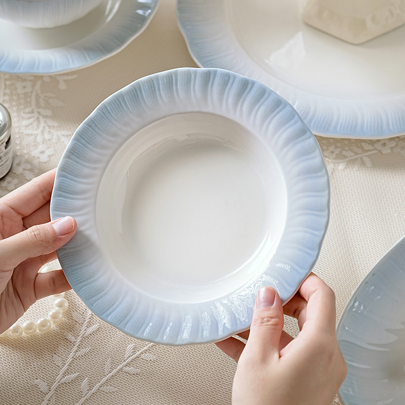 烟蓝草帽盘高级感盘子菜盘家用2025新款特别好看的陶瓷圆深汤盘碟