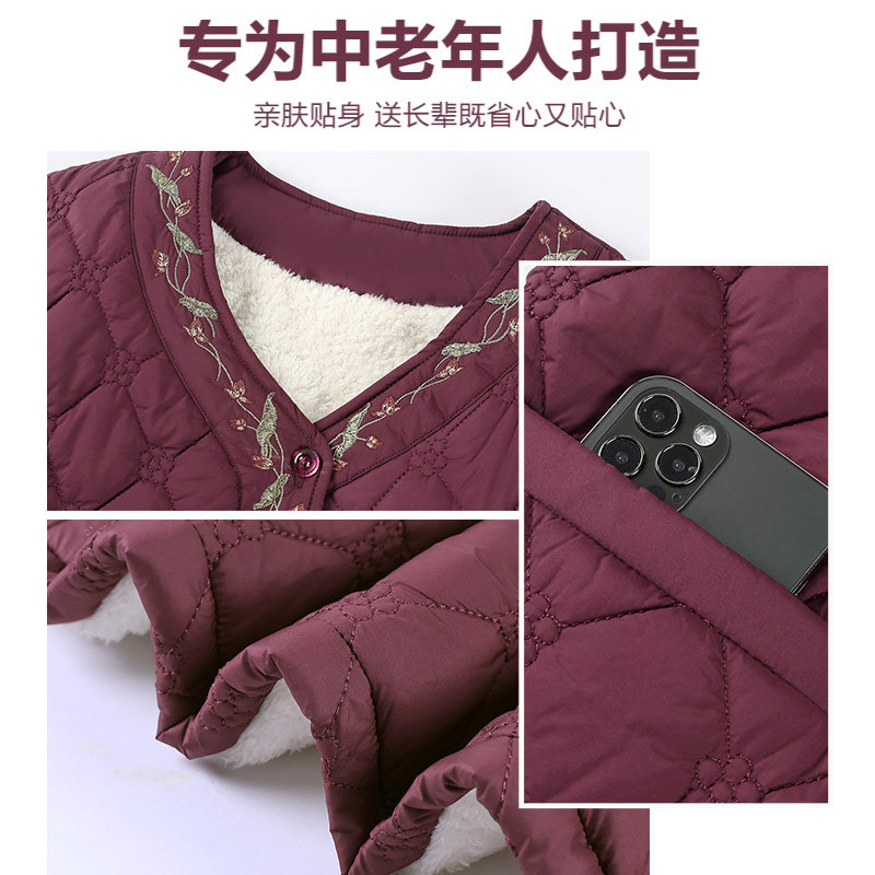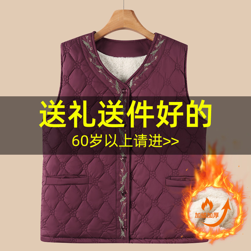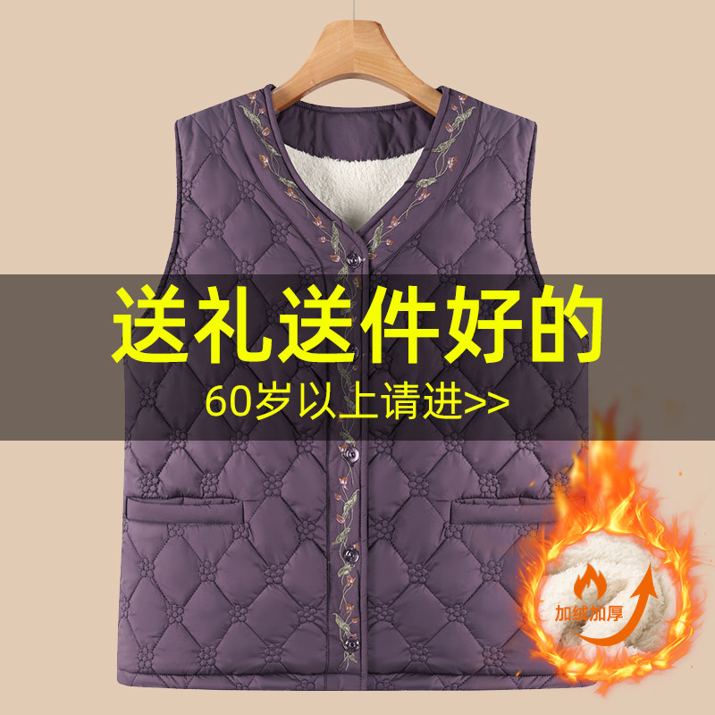奶奶装冬季加绒马甲中老年背心夹棉加厚妈妈秋冬保暖开衫老年人