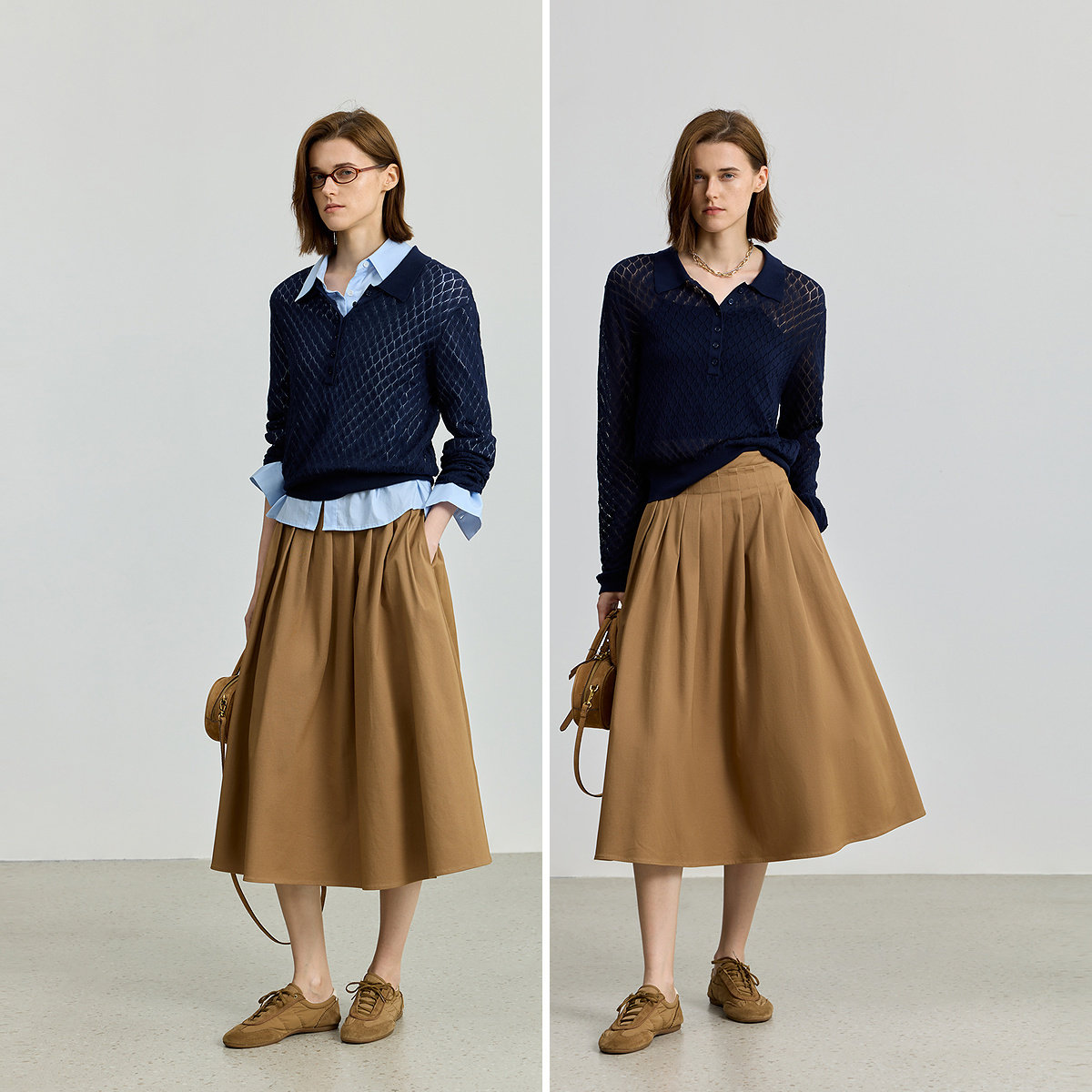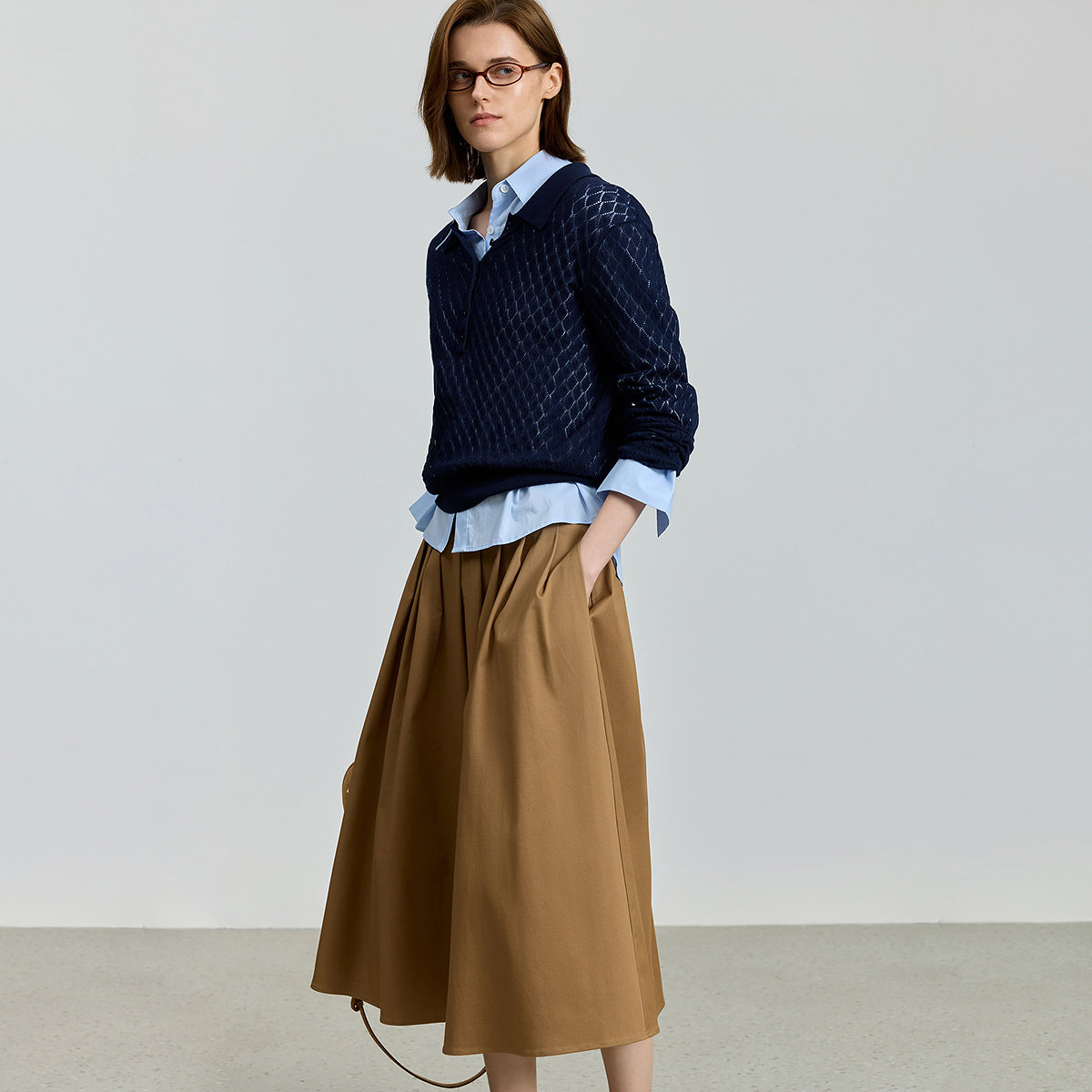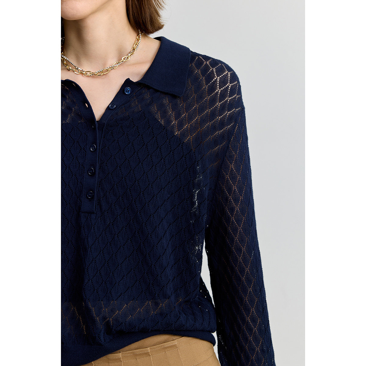 【商场同款】LILY2025新款女装复古POLO领镂空藏青色针织衫毛衣