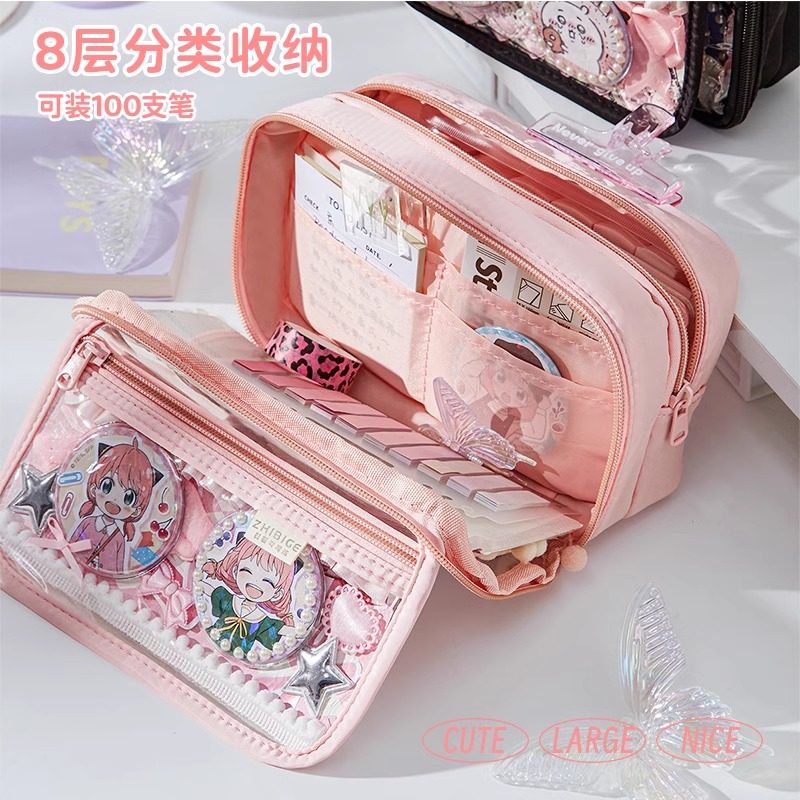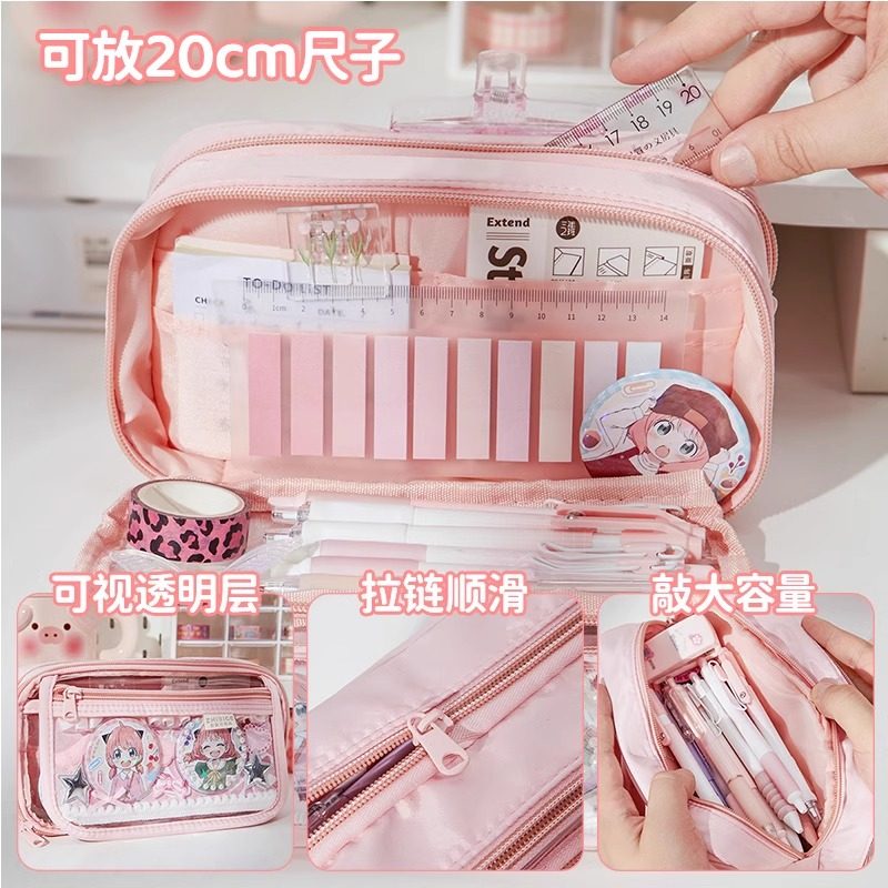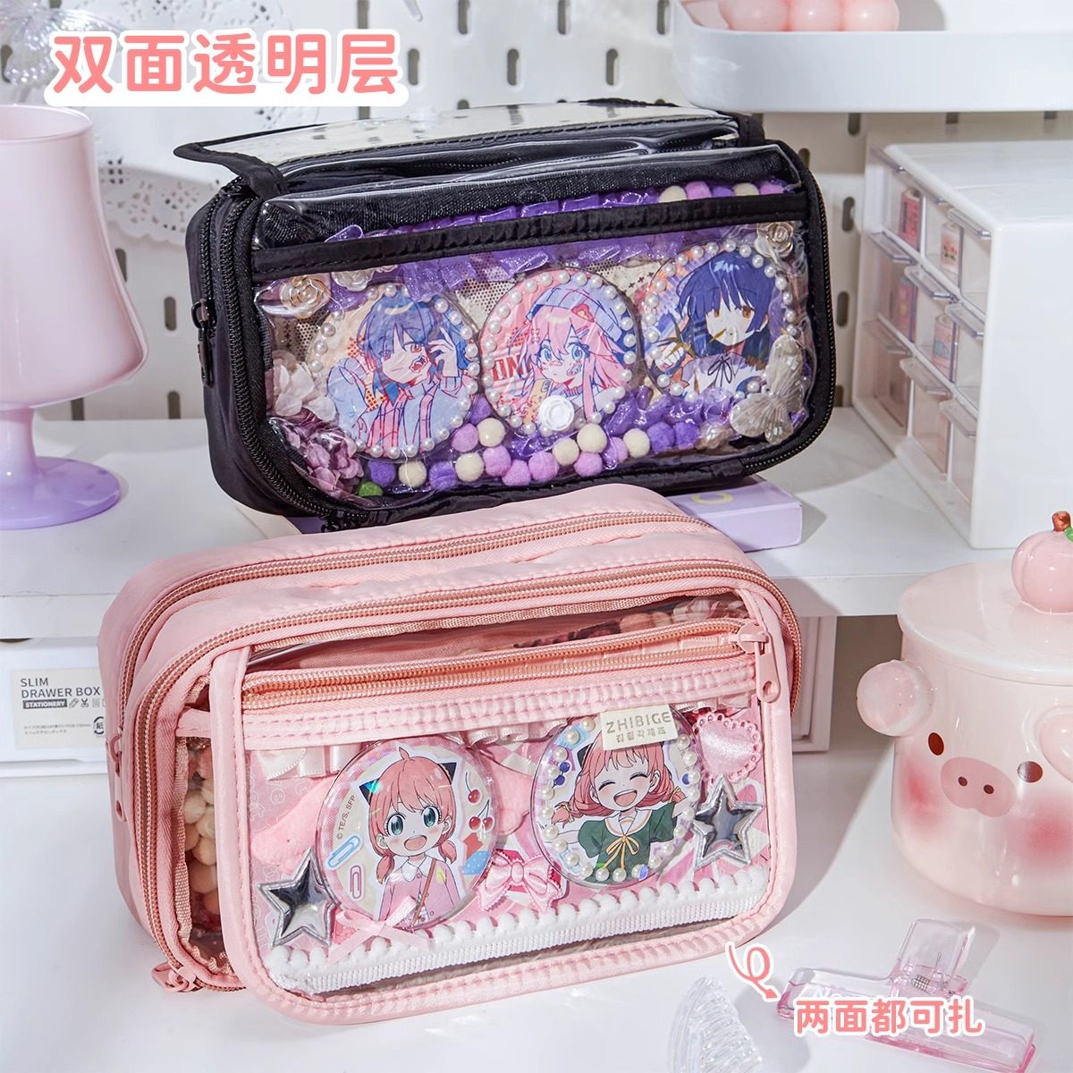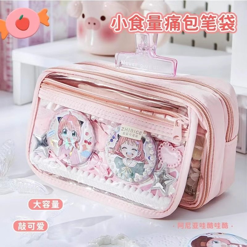 蓝色痛包笔袋女生2025新款小学生高颜值粉色透明文具盒女孩ins风送吧唧大容量小卡初中笔盒设计感小众不撞款