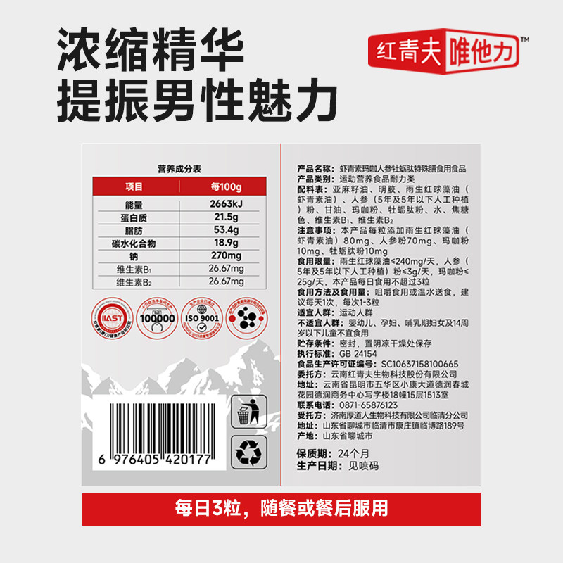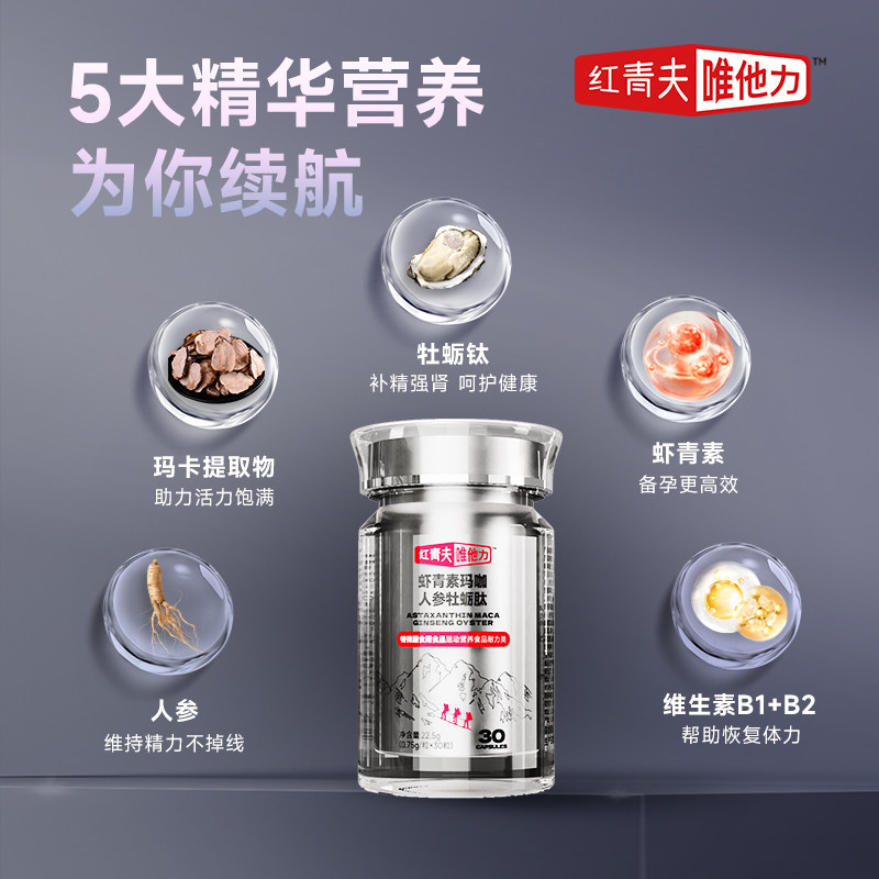 【红青夫唯他力】虾青素玛咖人参牡蛎肽(珠峰足球队指定膳食品)