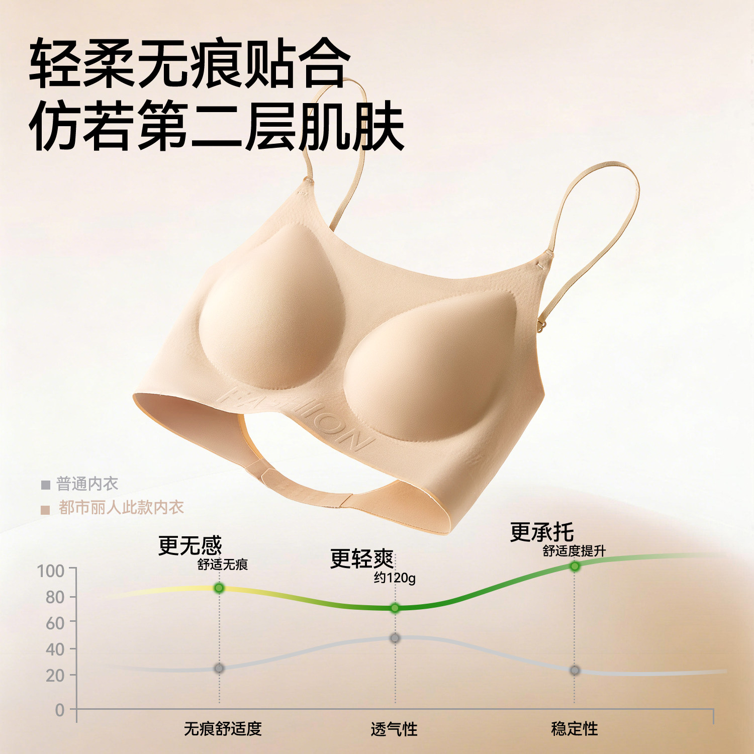 UFEEL【U提拉2代】内衣女无痕舒适小胸聚拢肩带美背文胸女8668