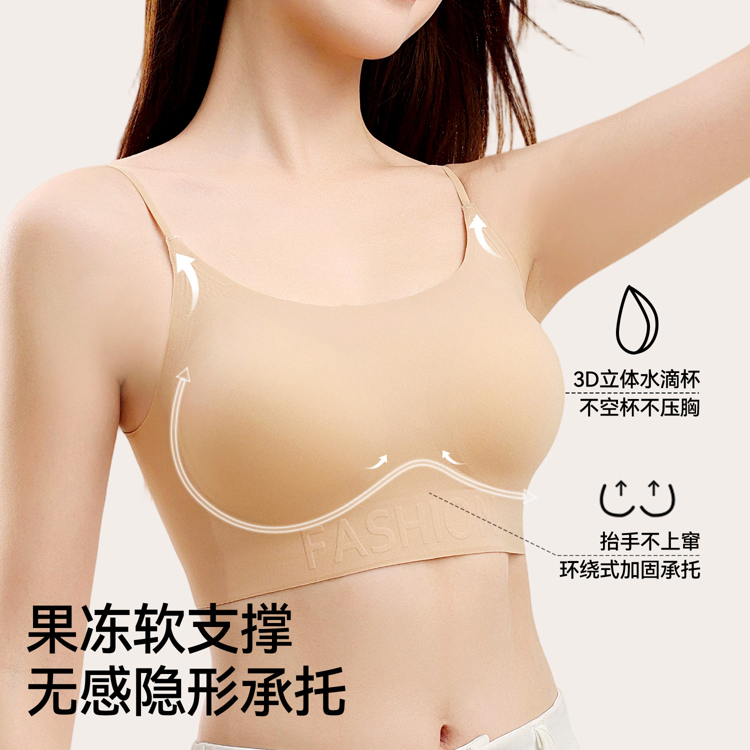 无痕内衣女小胸聚拢夏季薄款运动一体美背心式固定杯无钢圈文胸罩