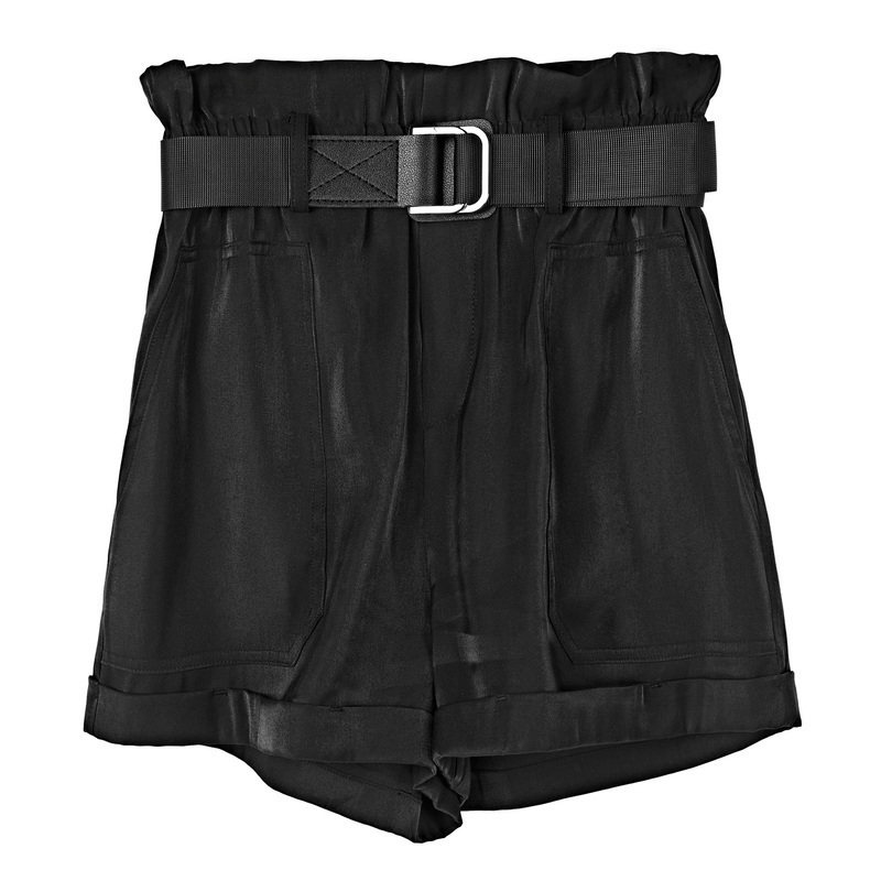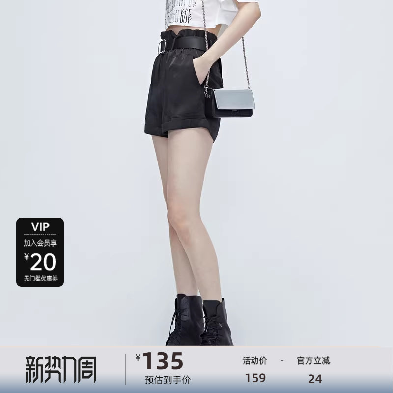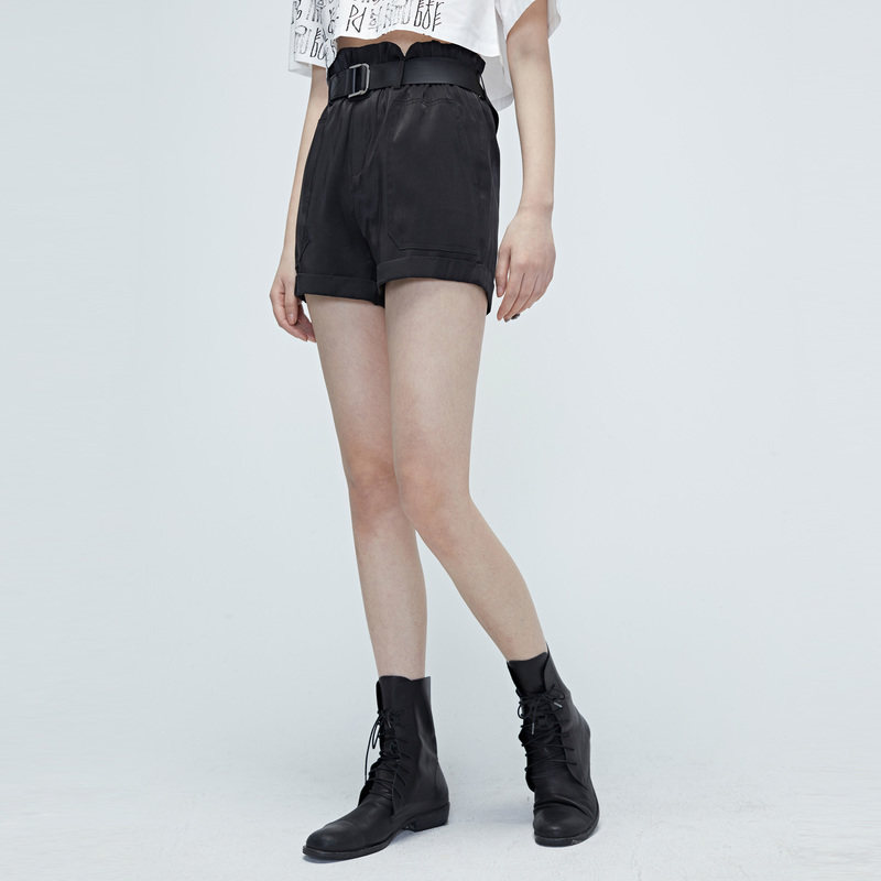 sdeer 圣迪奥 松紧高腰纯黑短裤S20280902