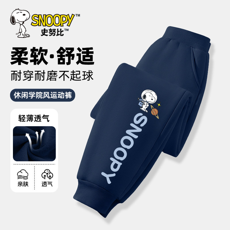 史努比儿童裤子春秋款中大童卫裤休闲舒适2025新款春装男童运动裤