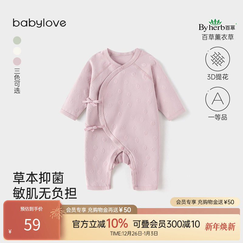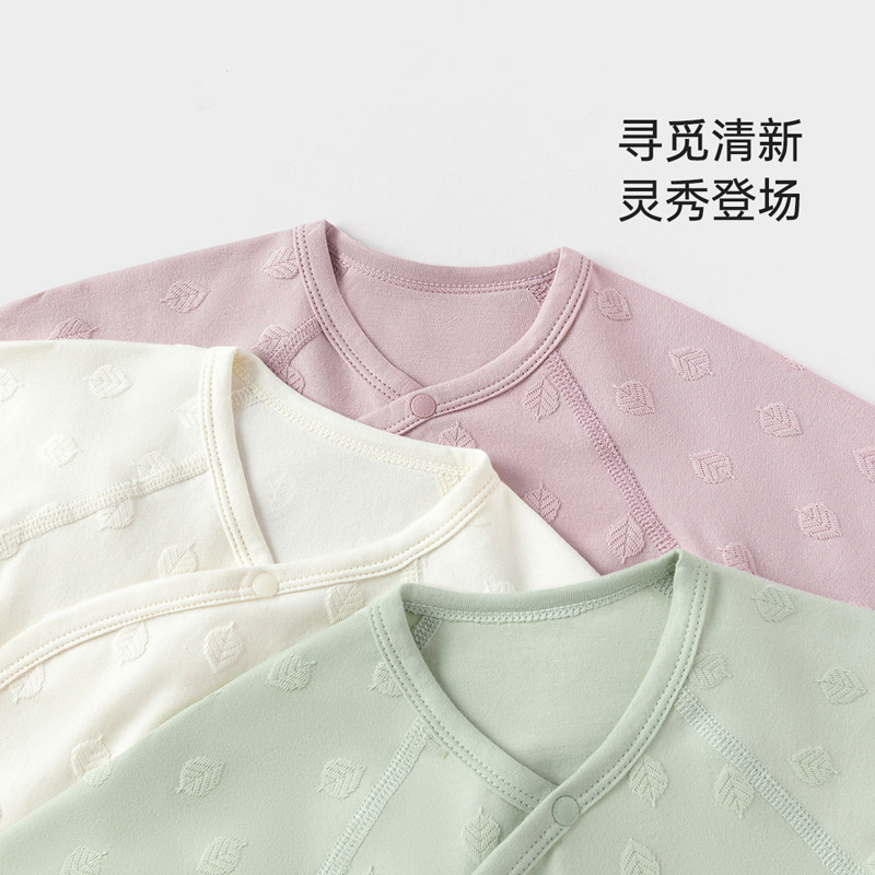 【清仓】babylove新生儿连体衣春秋婴儿绑带哈衣柔软薰叶提花衣服