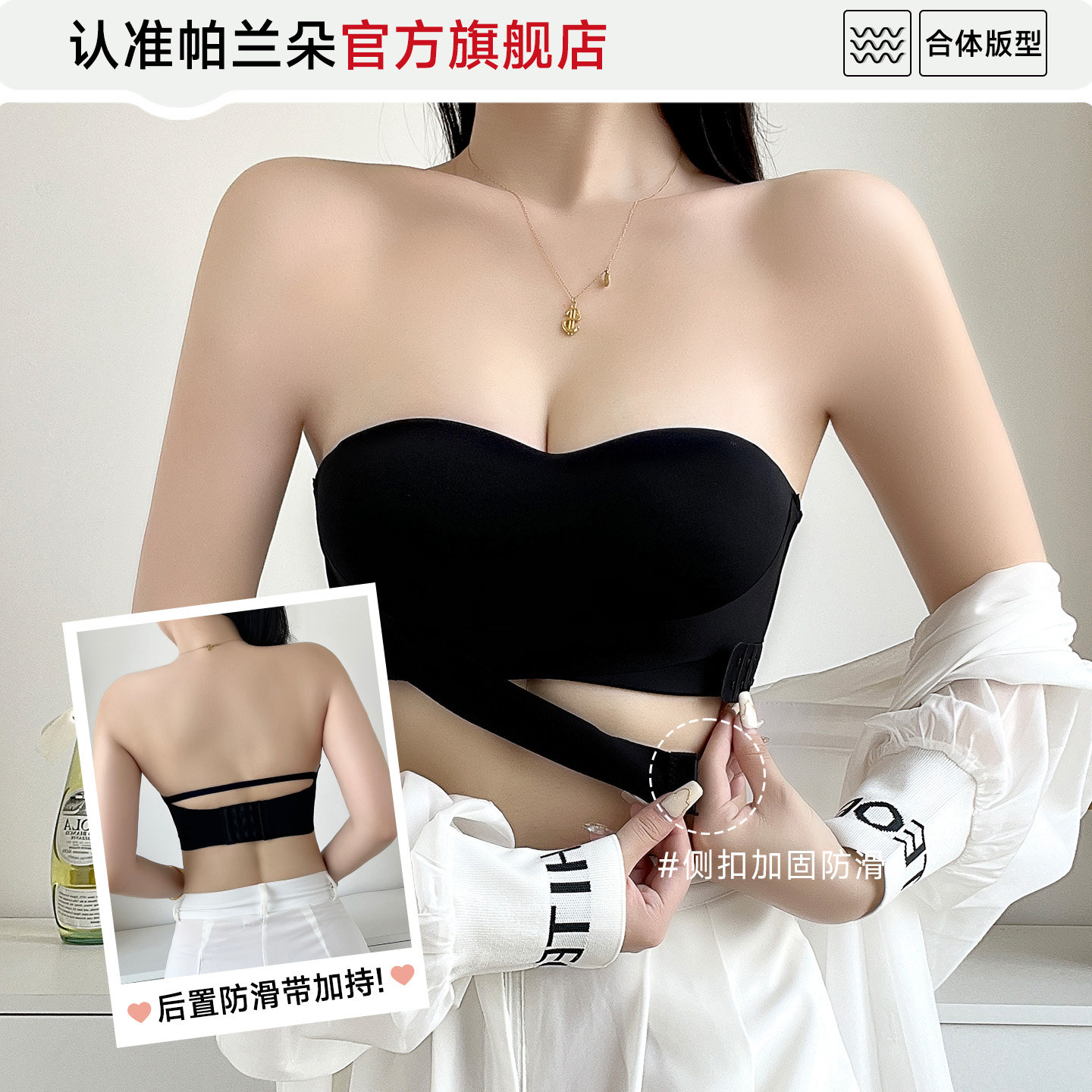 曲线主义小方杯无肩带内衣女防滑聚拢可外穿抹胸小胸不掉裹胸文胸