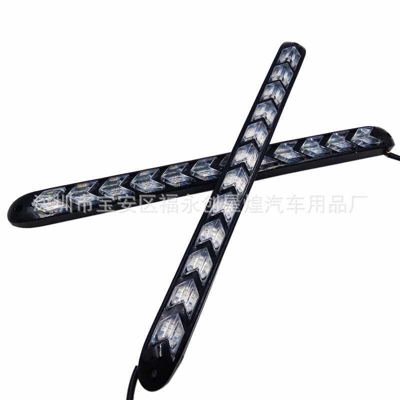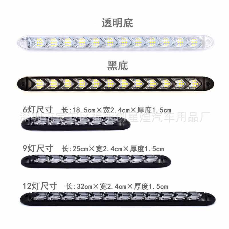 新品箭头流水转向灯 汽车白黄LED日间行车灯 12led流光双色日行灯
