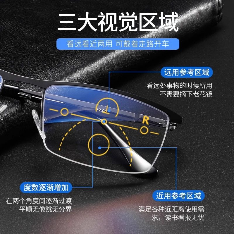 高档老花眼镜中老年高清老花镜男防蓝光老年人女多功能自动变焦镜