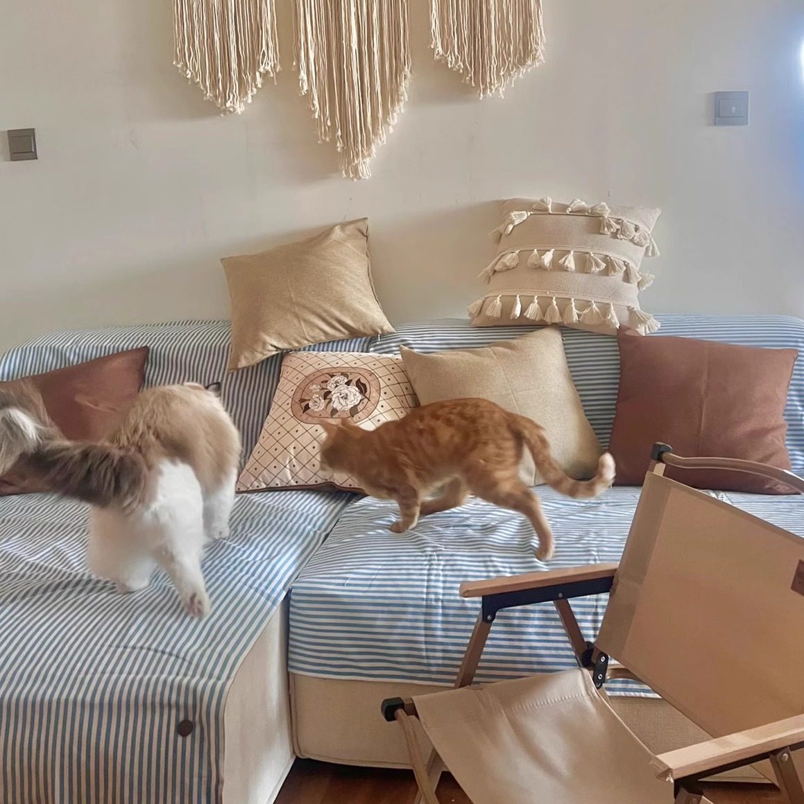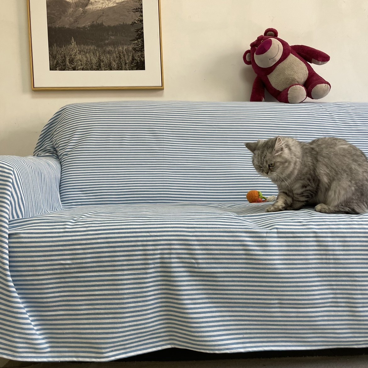 沙发巾沙发盖布沙发毯布艺套罩粗棉麻全盖加厚条纹靠背扶手一片式
