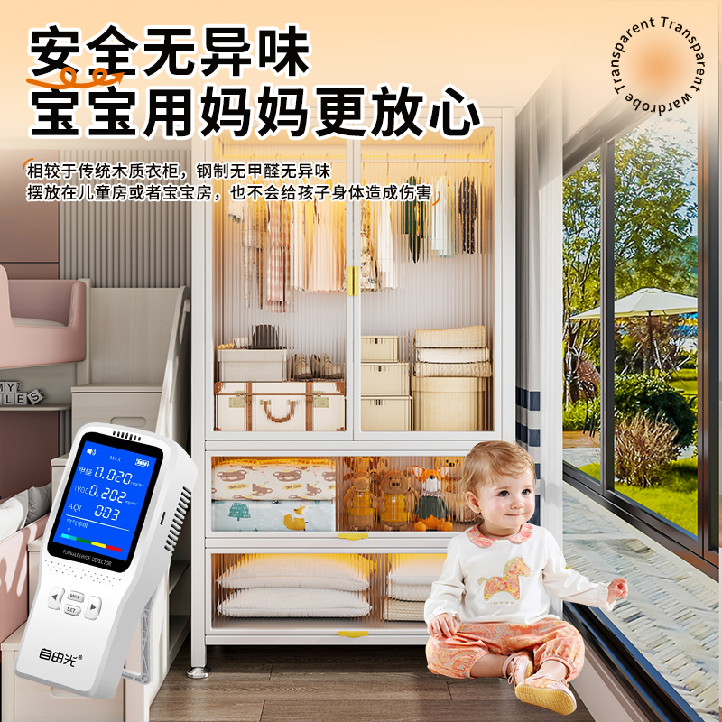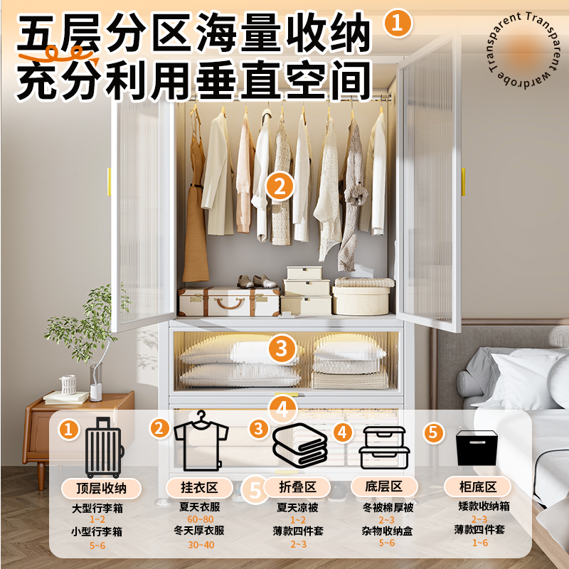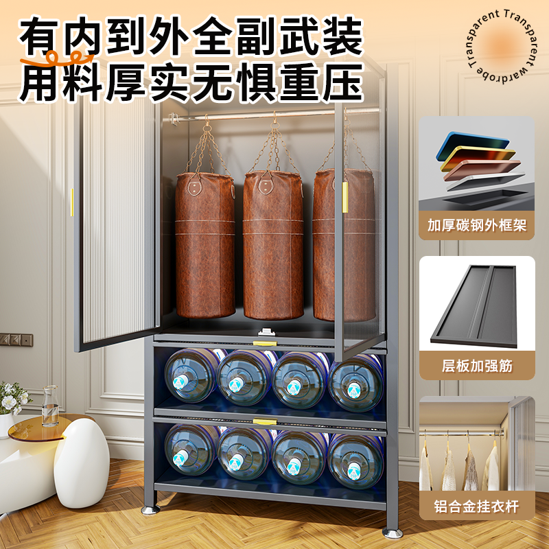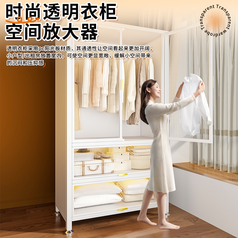 家用新款碳钢衣柜卧室大容量多功能收纳柜储物柜一体靠墙防尘衣橱