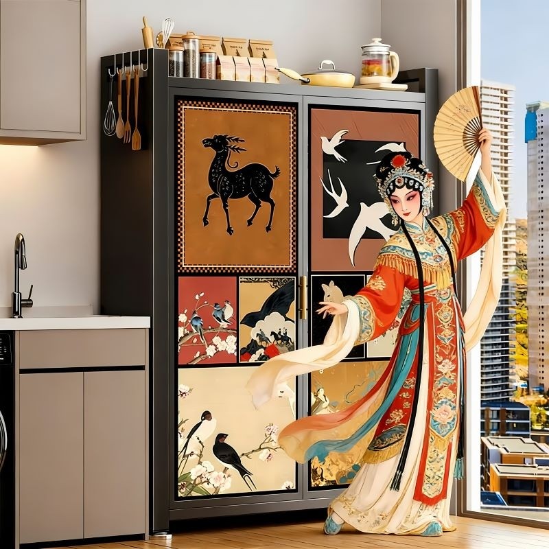 中古风收纳柜客厅卧室厨房靠墙一体书柜衣柜橱柜落地金属储物阳台