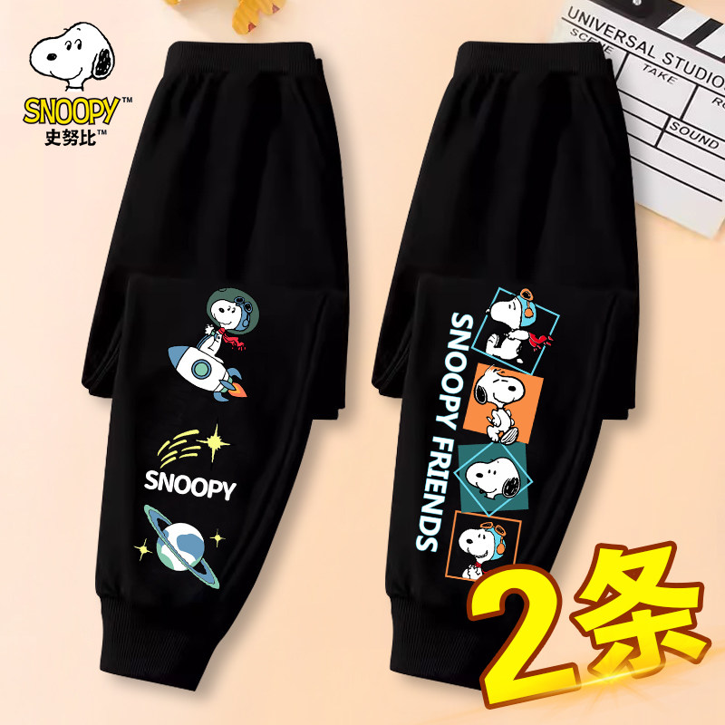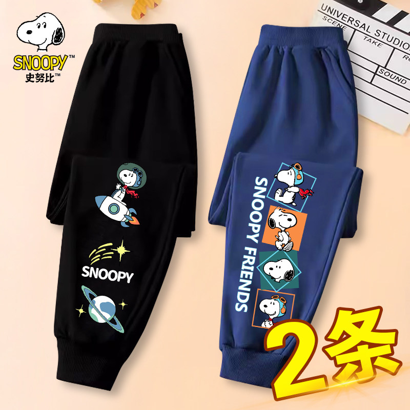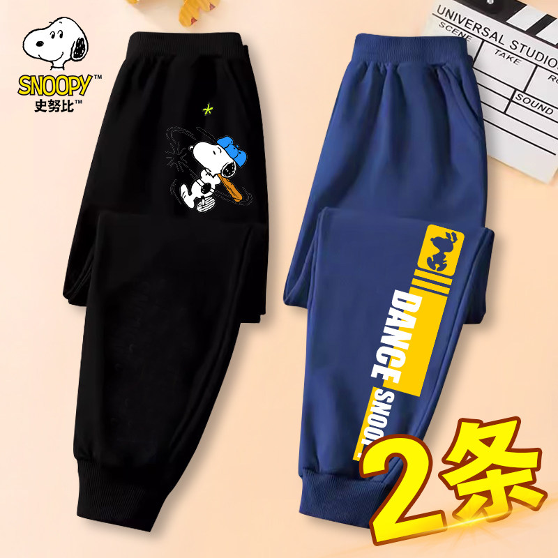 史努比男童裤子春秋款2025新款中大童宽松纯棉卫裤秋装休闲长裤