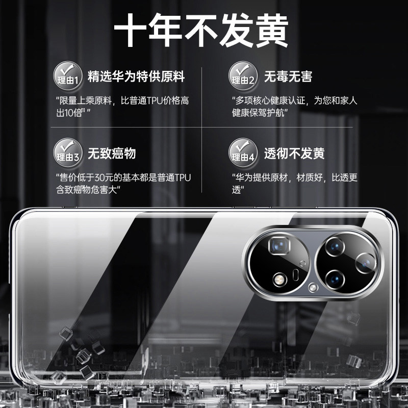 适用华为p50pro手机壳新款透明p50超薄防摔电镀硅胶p50e镜头全包防摔软保护套por限量版高级感男士女款简约潮