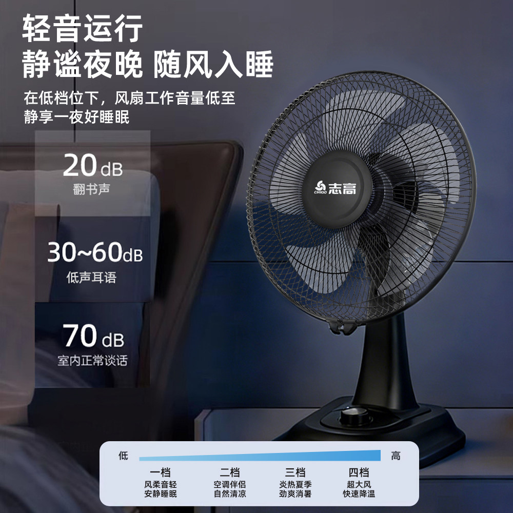 志高电风扇家用台式台扇2026新款大风力小型办公室桌面静音电扇