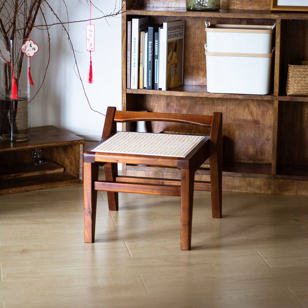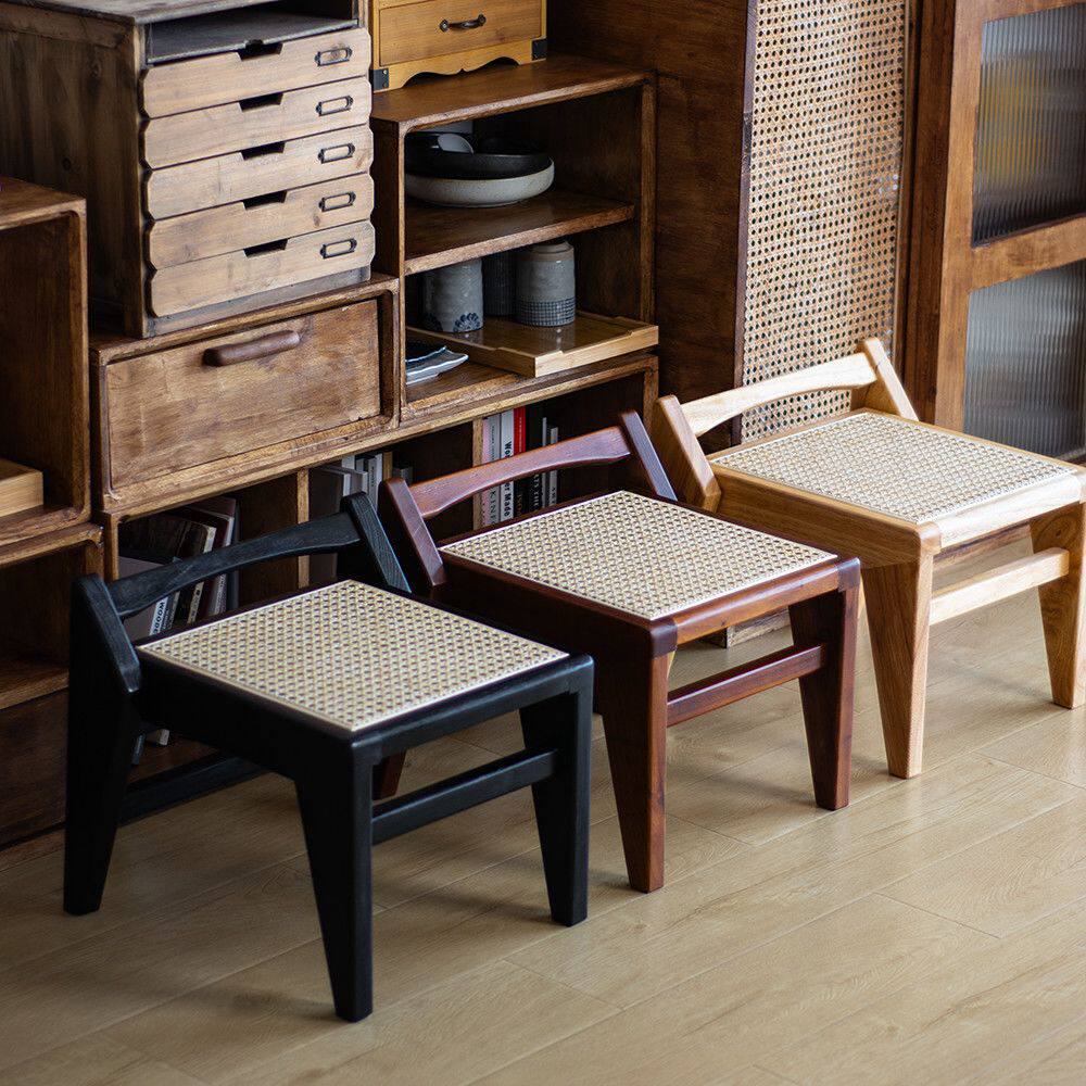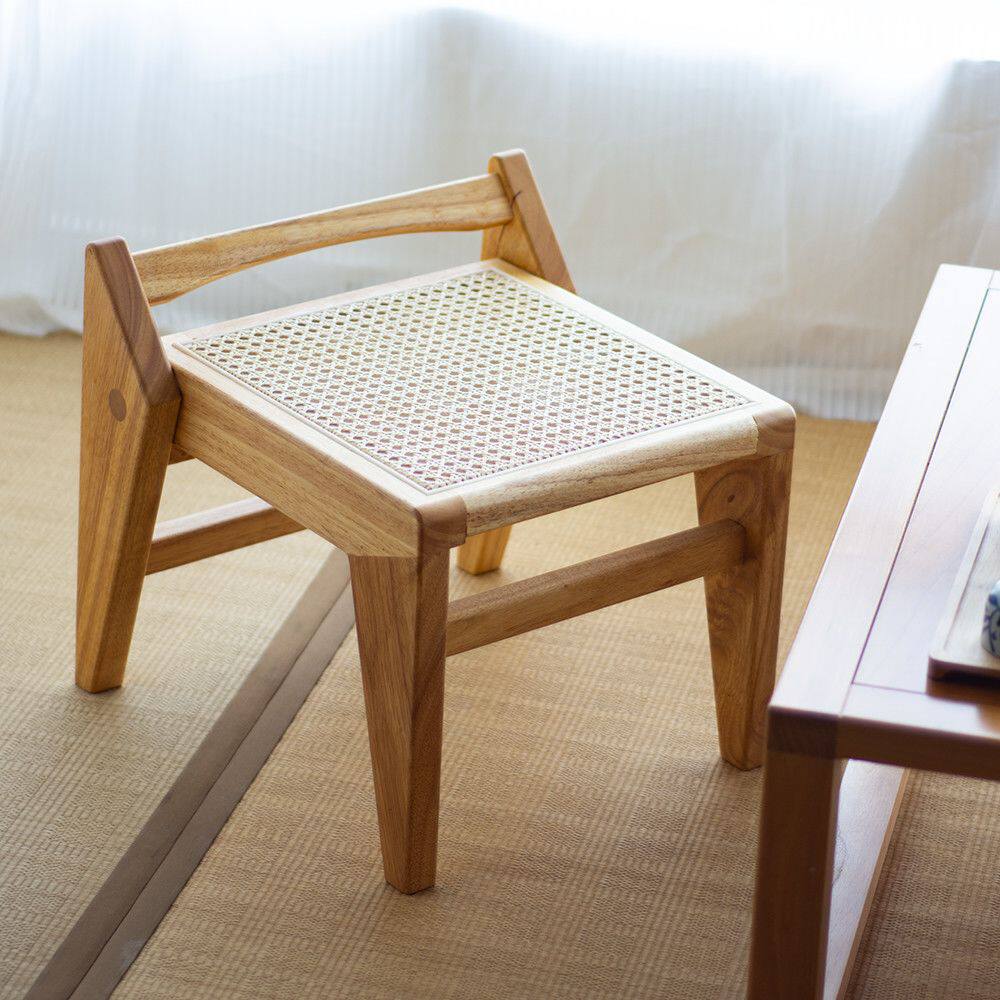 d寅榫藤编实木榫卯小凳子家用换鞋凳沙发凳茶几矮凳透气日式侘寂