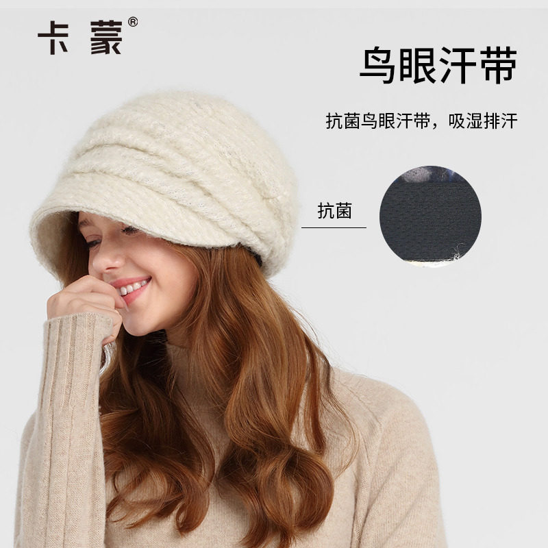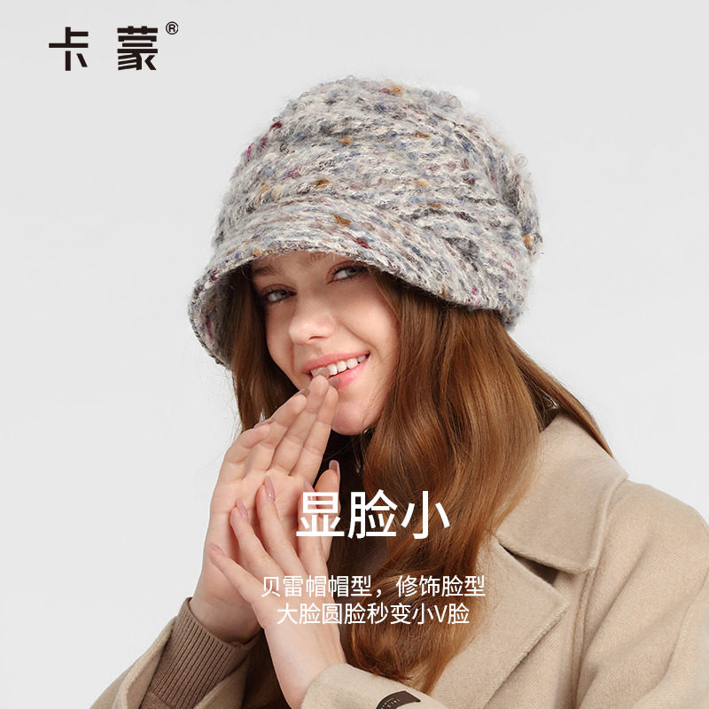 卡蒙英伦绵羊毛呢鸭舌贝雷帽显脸小女秋冬小香风日系保暖护耳帽