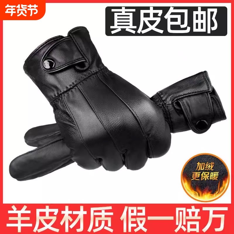 真皮手套男士女士冬季加绒加厚保暖绵羊皮手套骑行开车摩托车薄款