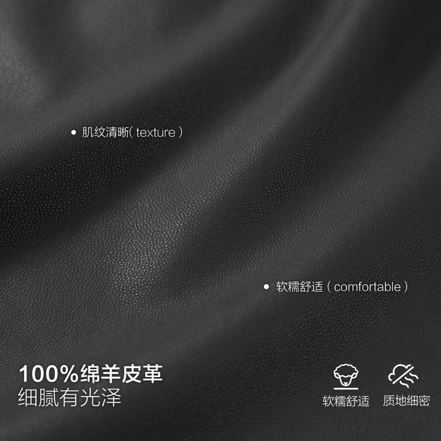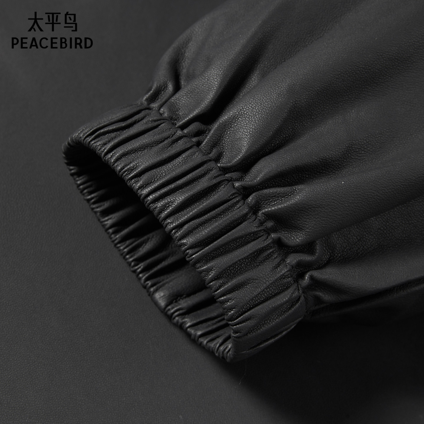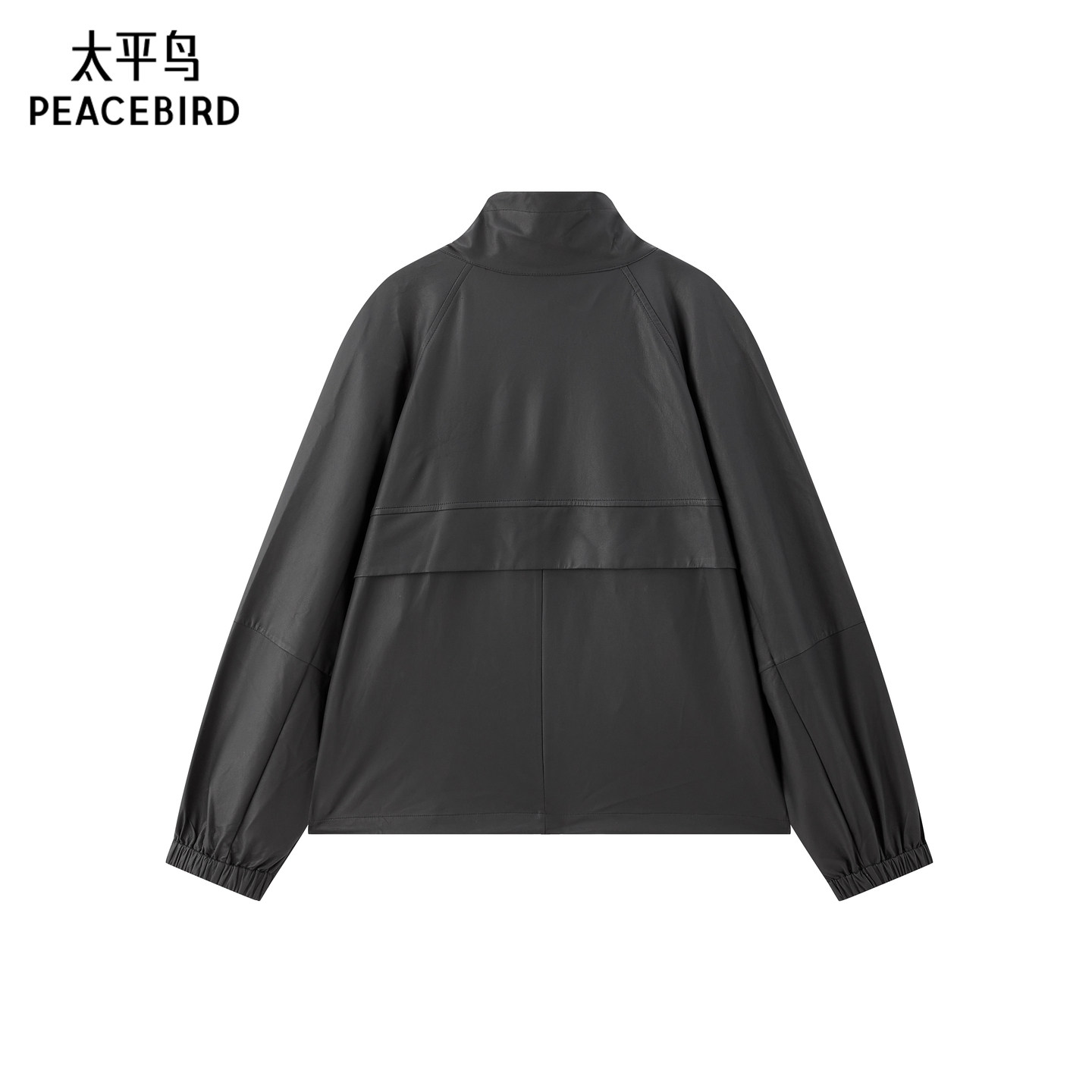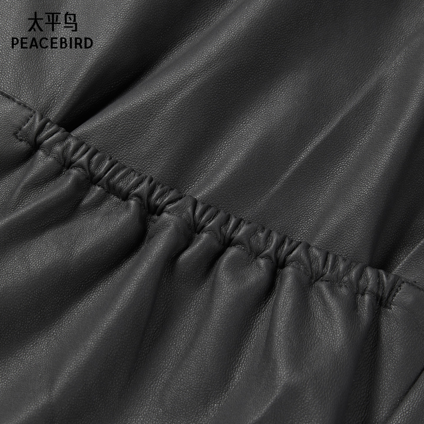【商场同款】太平鸟新型纳米皮真皮皮衣截短廓形外套女A1BDF422E*