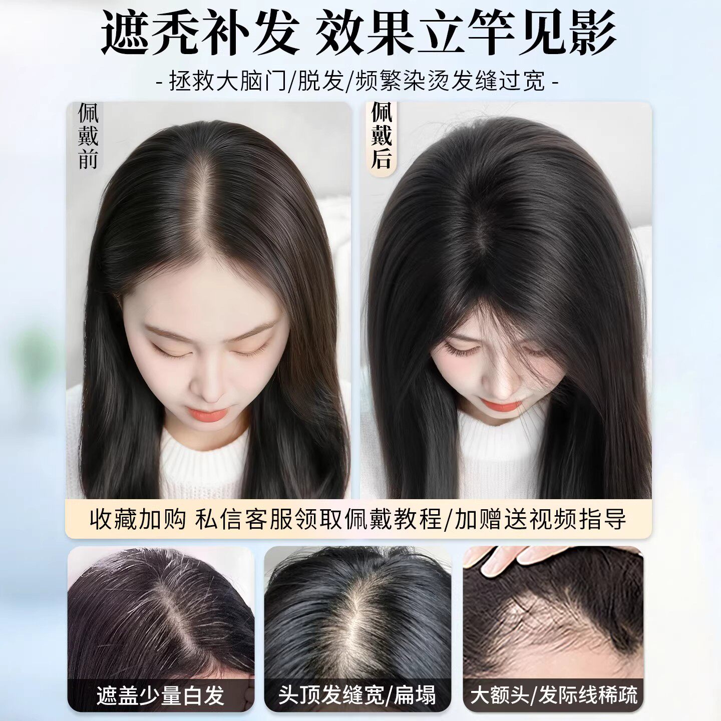 刘海假发片女头顶增发量真发遮白发蓬松高颅顶自然前额无痕补发片