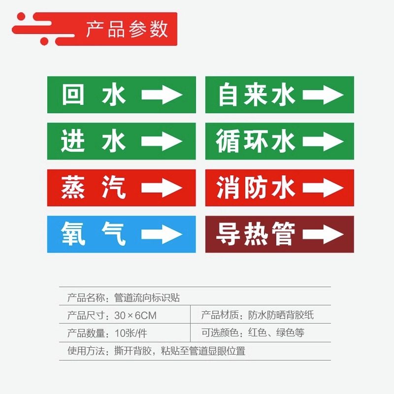 氮气废气压缩空气自来水蒸汽氧气天然气管道流向标识牌背胶贴纸