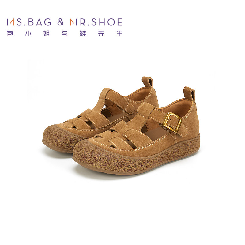 包小姐与鞋先生2025年春季新品磨砂牛皮编织平底勃肯凉鞋女251485