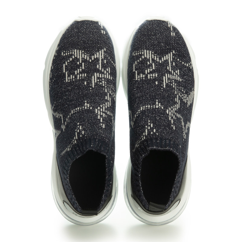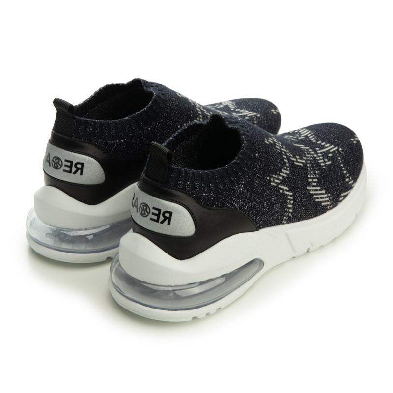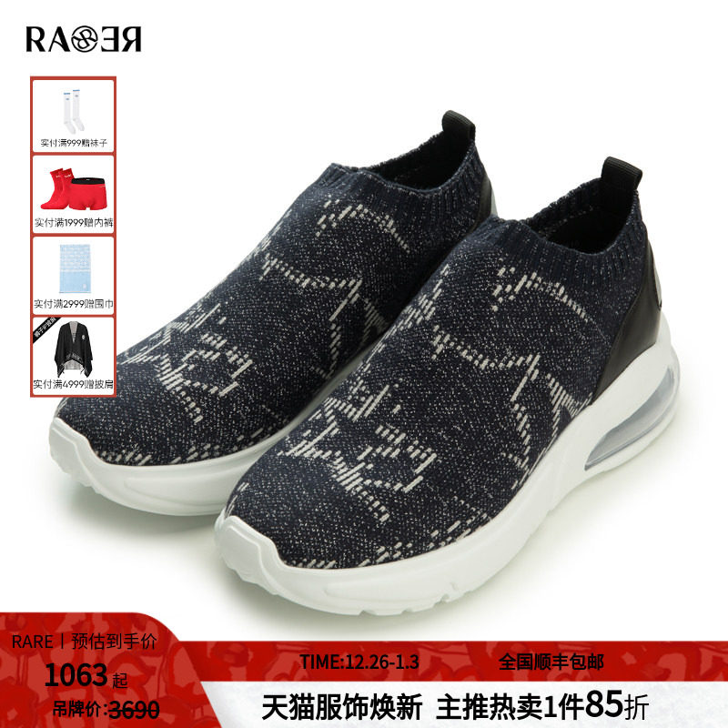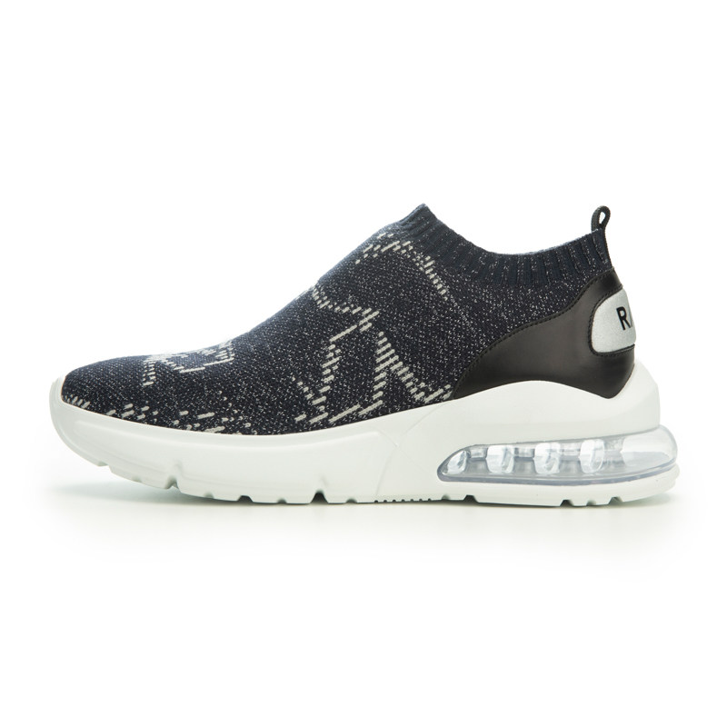 RARE威雅男鞋 秋冬新款男士藏青色星星提花飞织气垫休闲鞋
