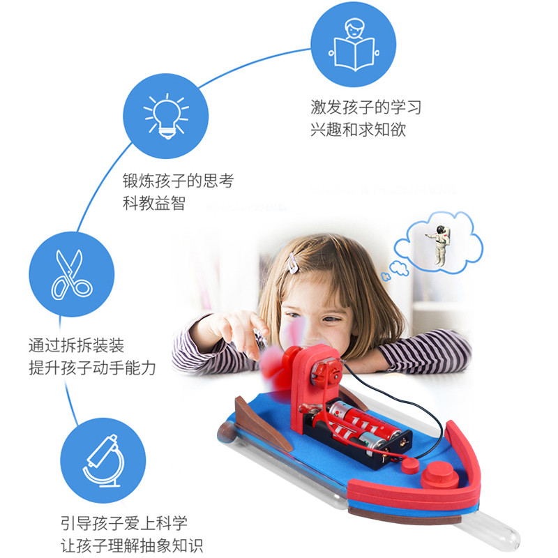儿童益智拼装玩具DIY电动船物理科学实验套装科技小制作水上快艇