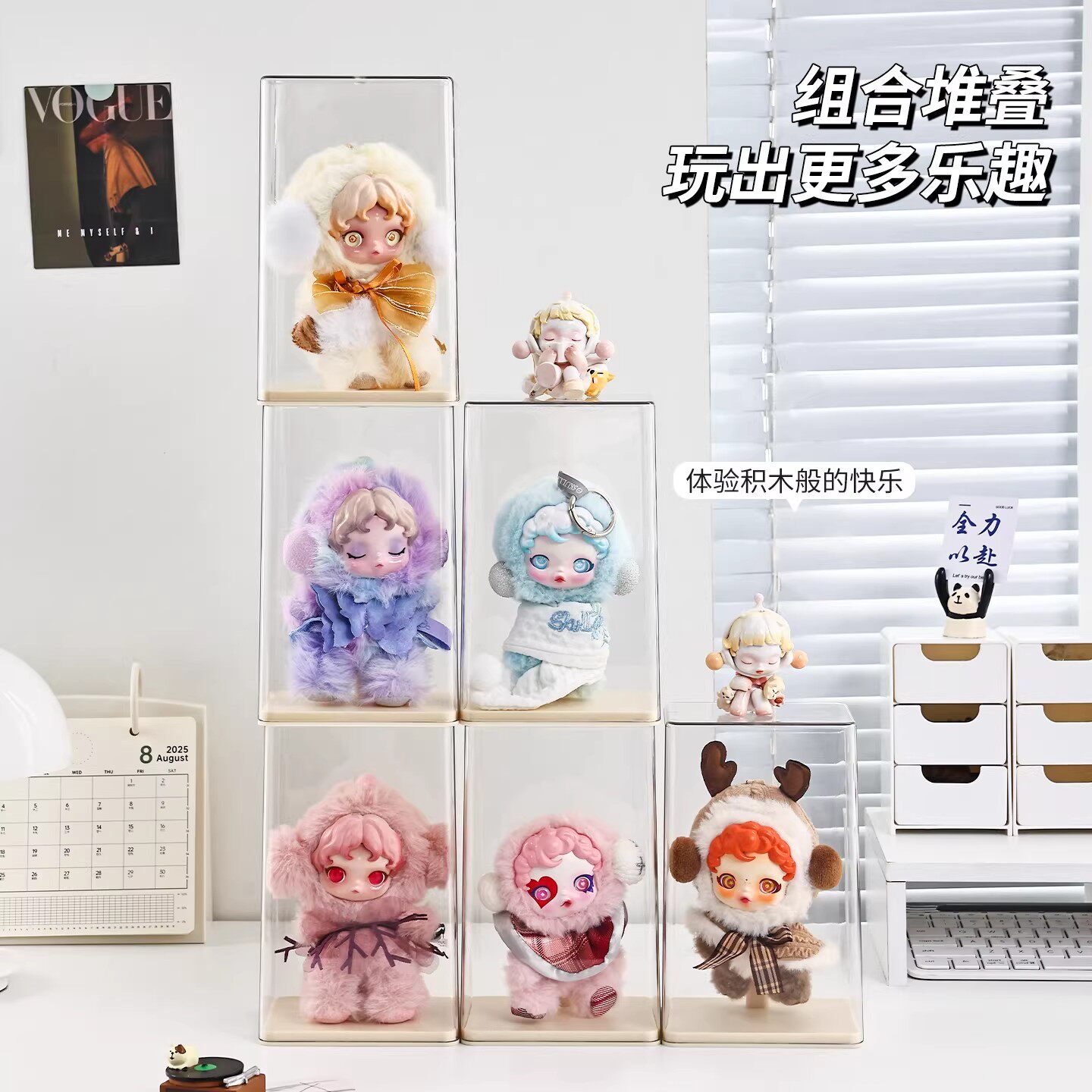 萌粒收纳字母相框迷你公仔收纳盒小摆件松松叠叠乐手办盲盒展示架
