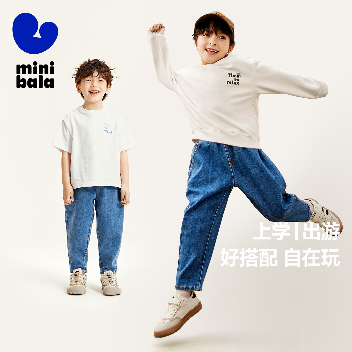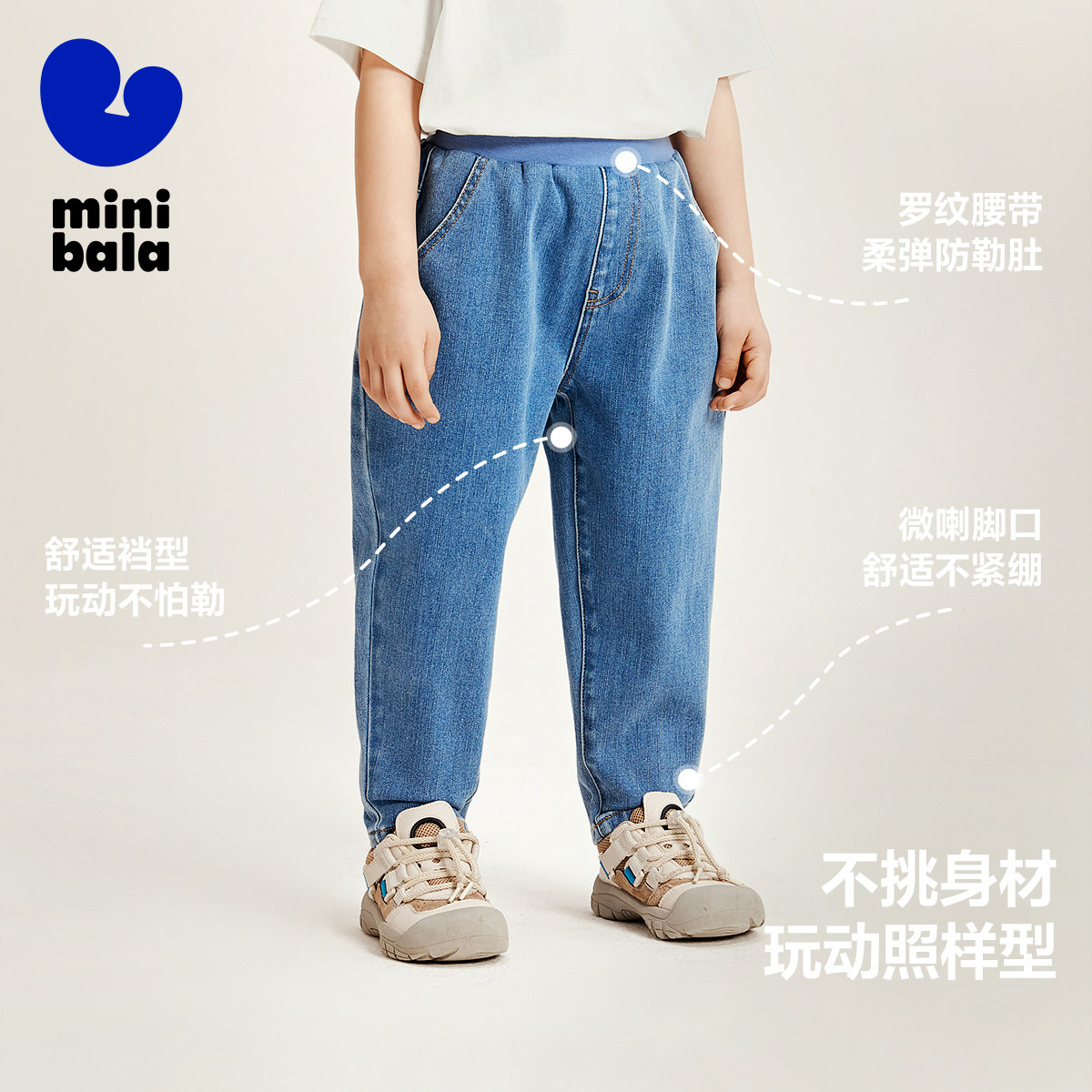 迷你巴拉巴拉男童舒适裤子长裤春新款宝宝儿童亲肤潮牛仔萝卜裤