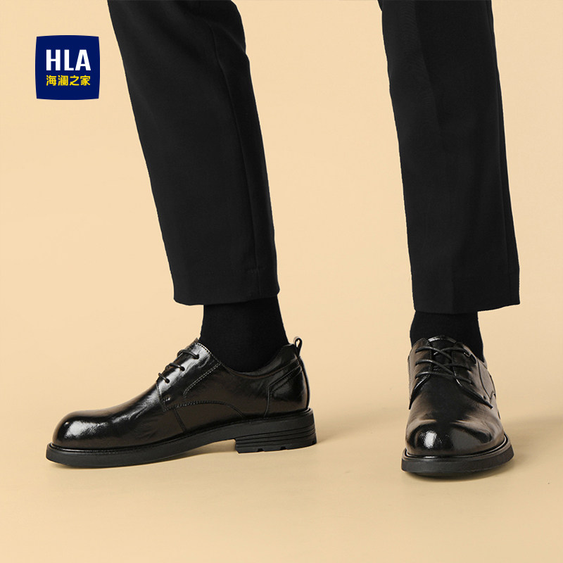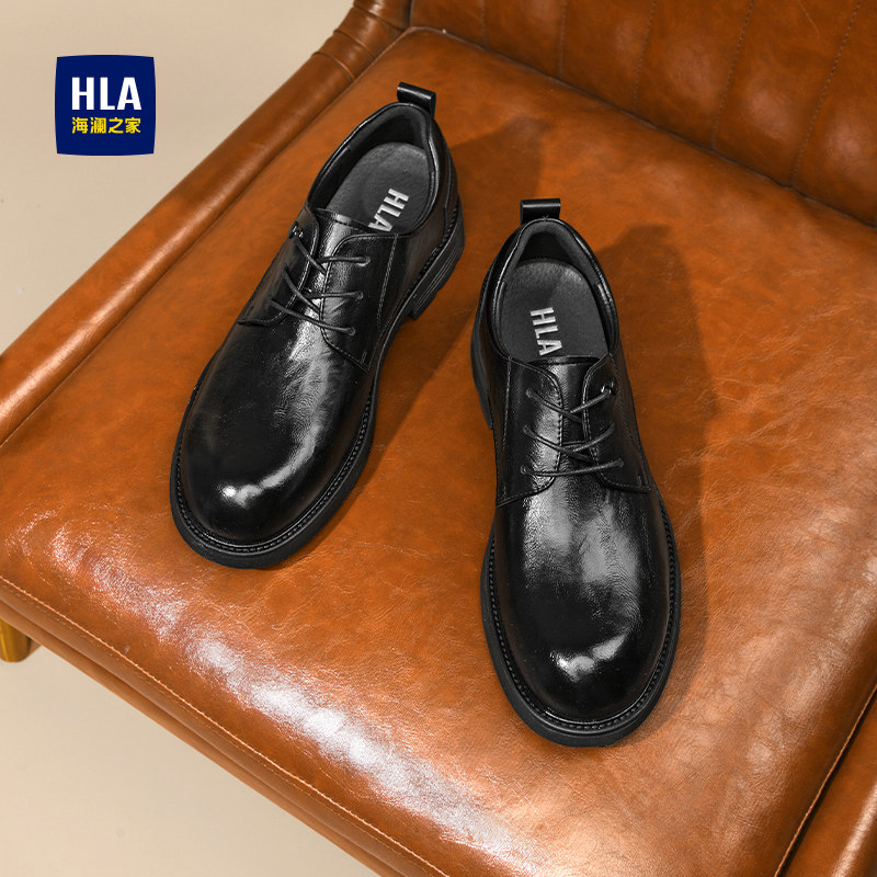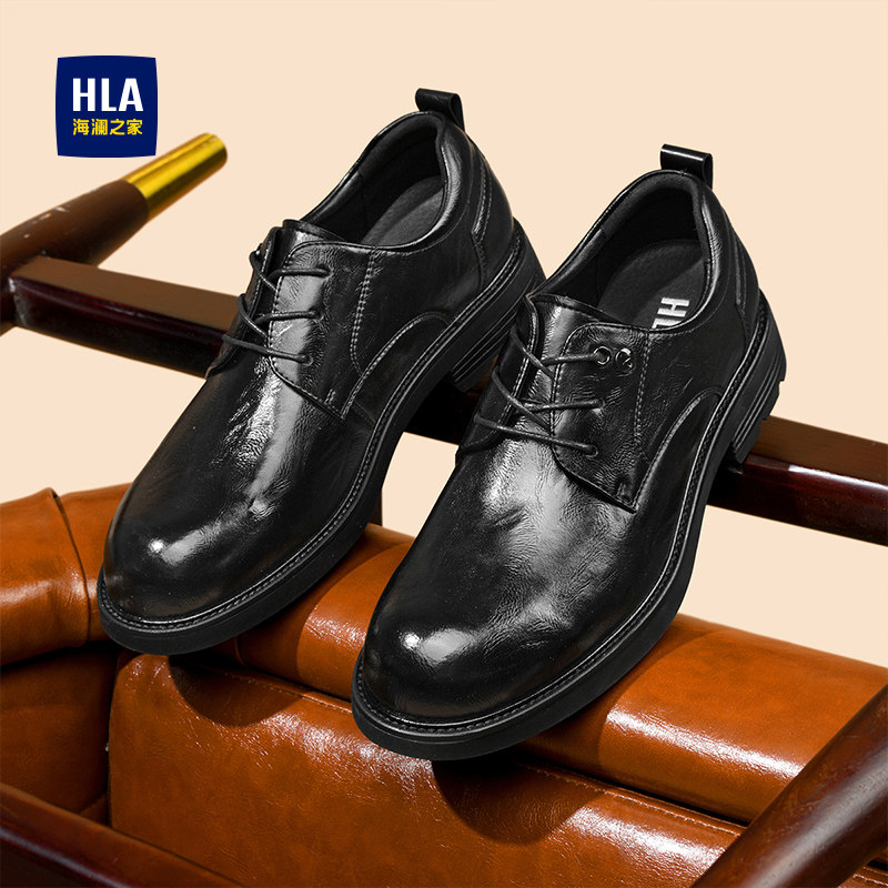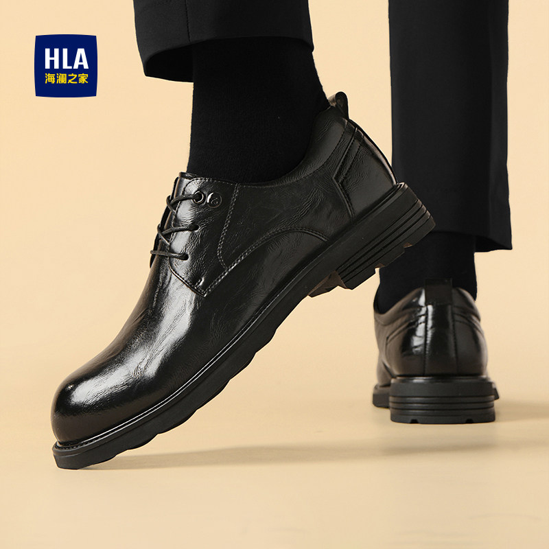 HLA/海澜之家男鞋新款秋冬商务正装系带皮鞋男士圆头时尚厚底增高