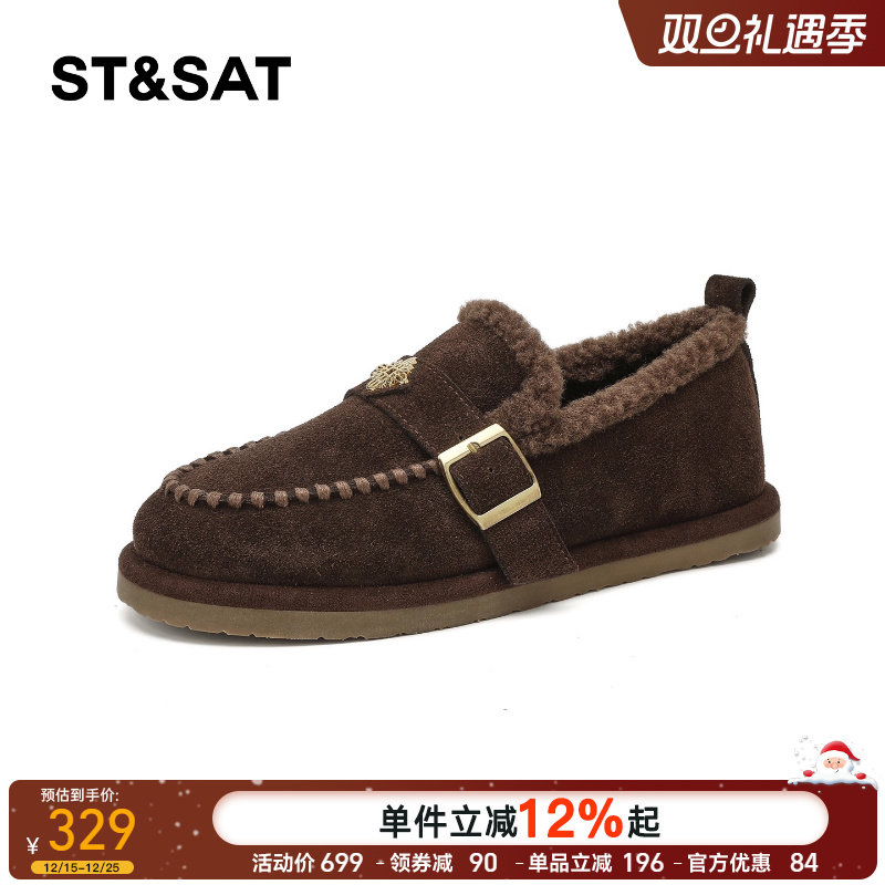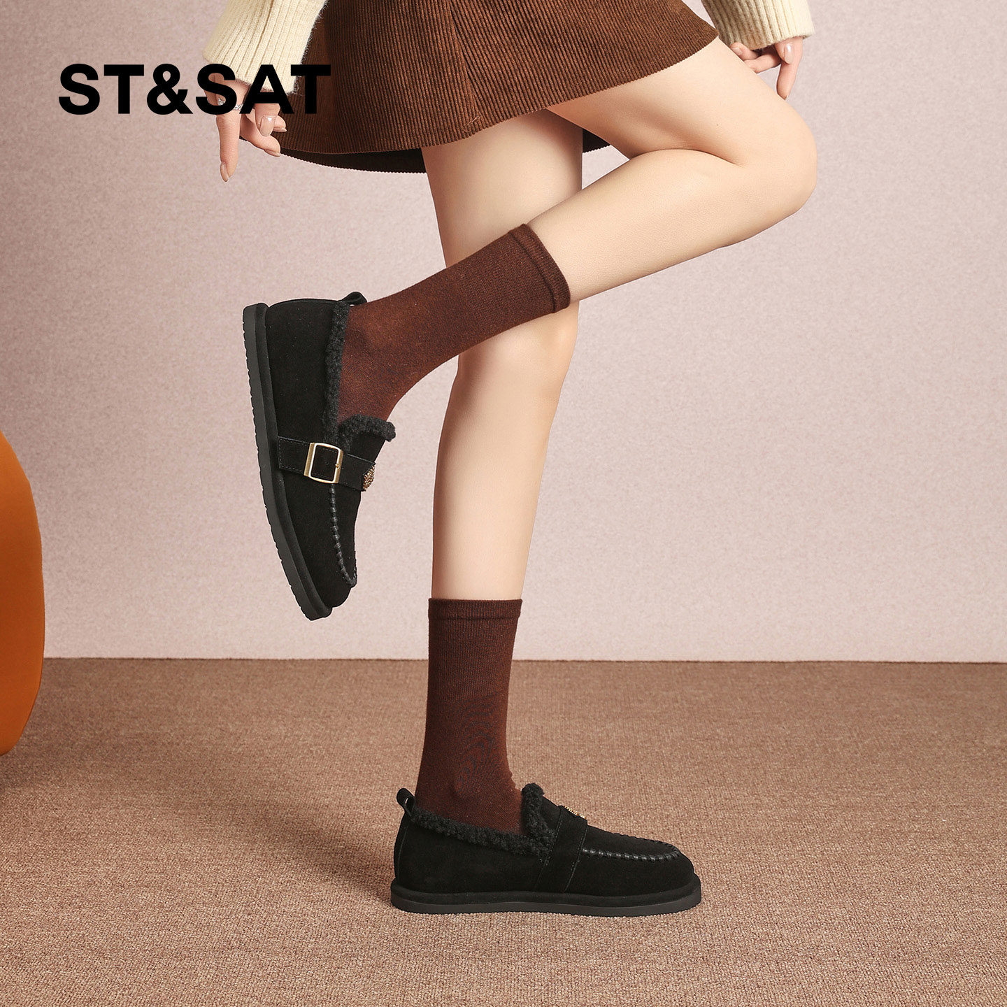 星期六复古加绒棉鞋女冬2025新款皮带扣软底保暖毛毛鞋加厚雪地鞋