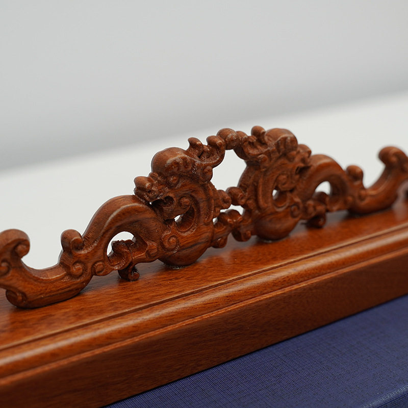 极速木制毛笔笔架笔托红檀木雕刻双龙笔搁文房四T宝搁笔镇纸一体