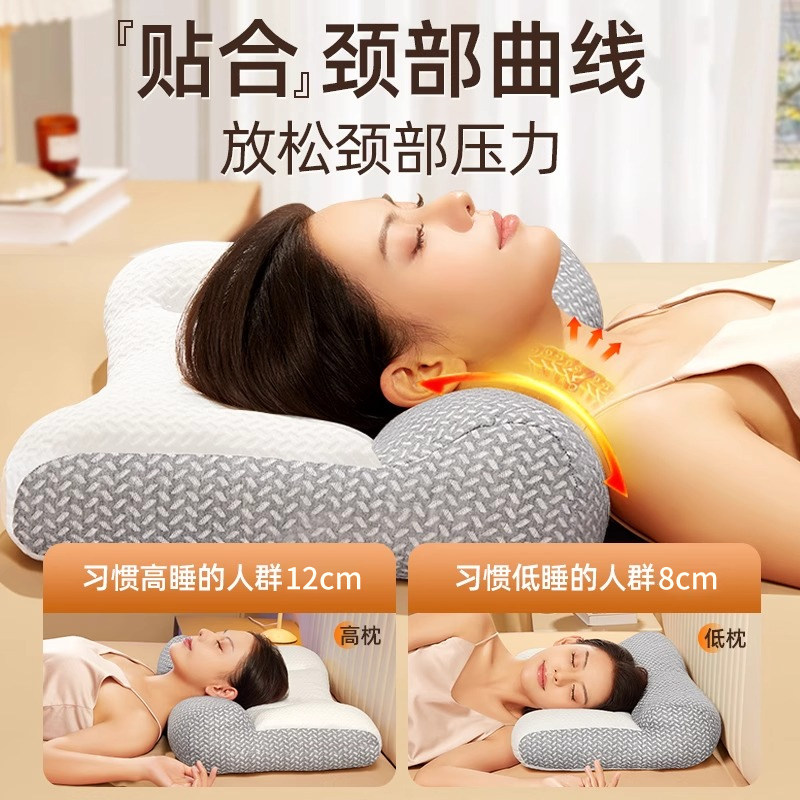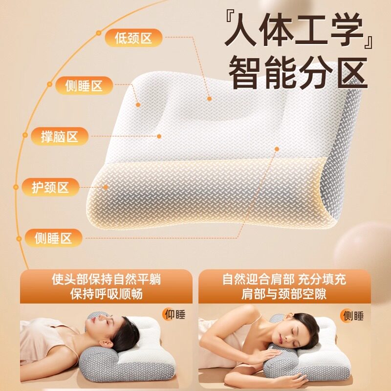 反牵引枕头护颈椎助睡眠枕打呼噜专用学生枕芯侧睡分区曲度肩颈