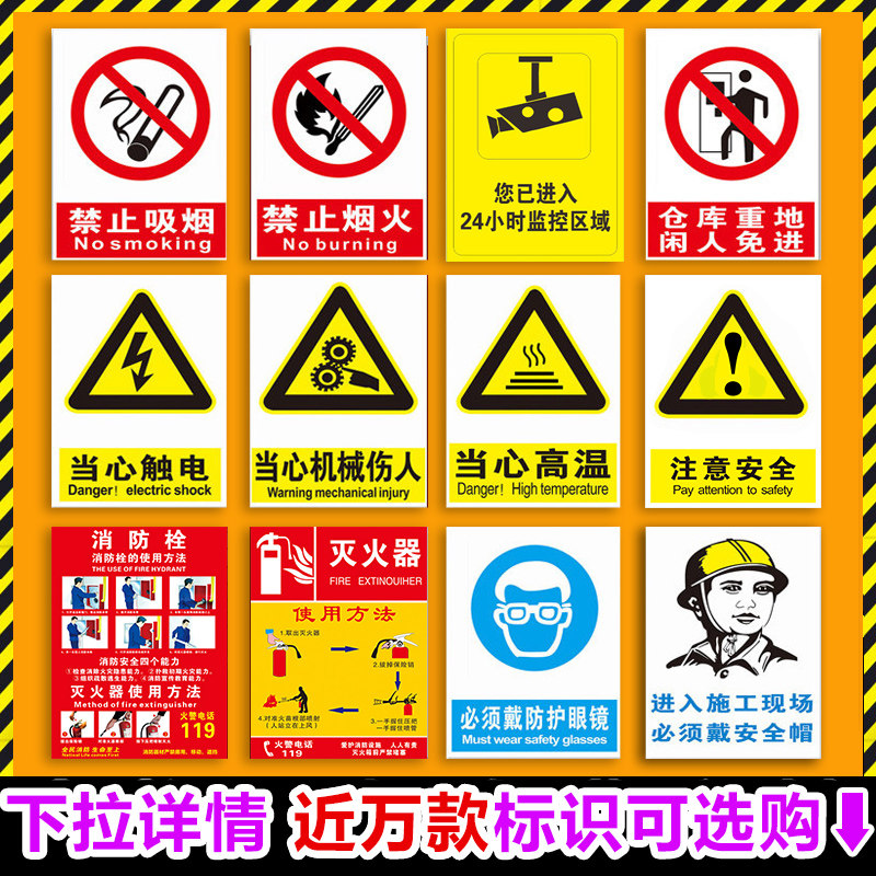 严禁烟火警示牌贴纸消防标识标牌禁止吸烟提示牌仓库重地禁止烟火警示牌防火车贴禁止吸烟墙贴纸指示牌墙贴