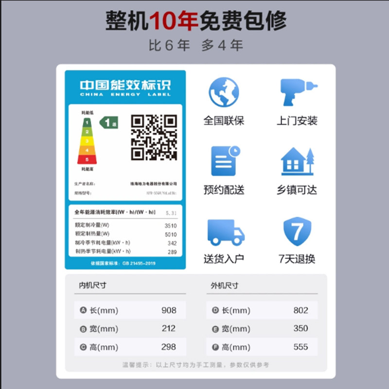 格力空调1.5匹一级变频冷暖卧室家用挂机节能王子上海国家补贴20%