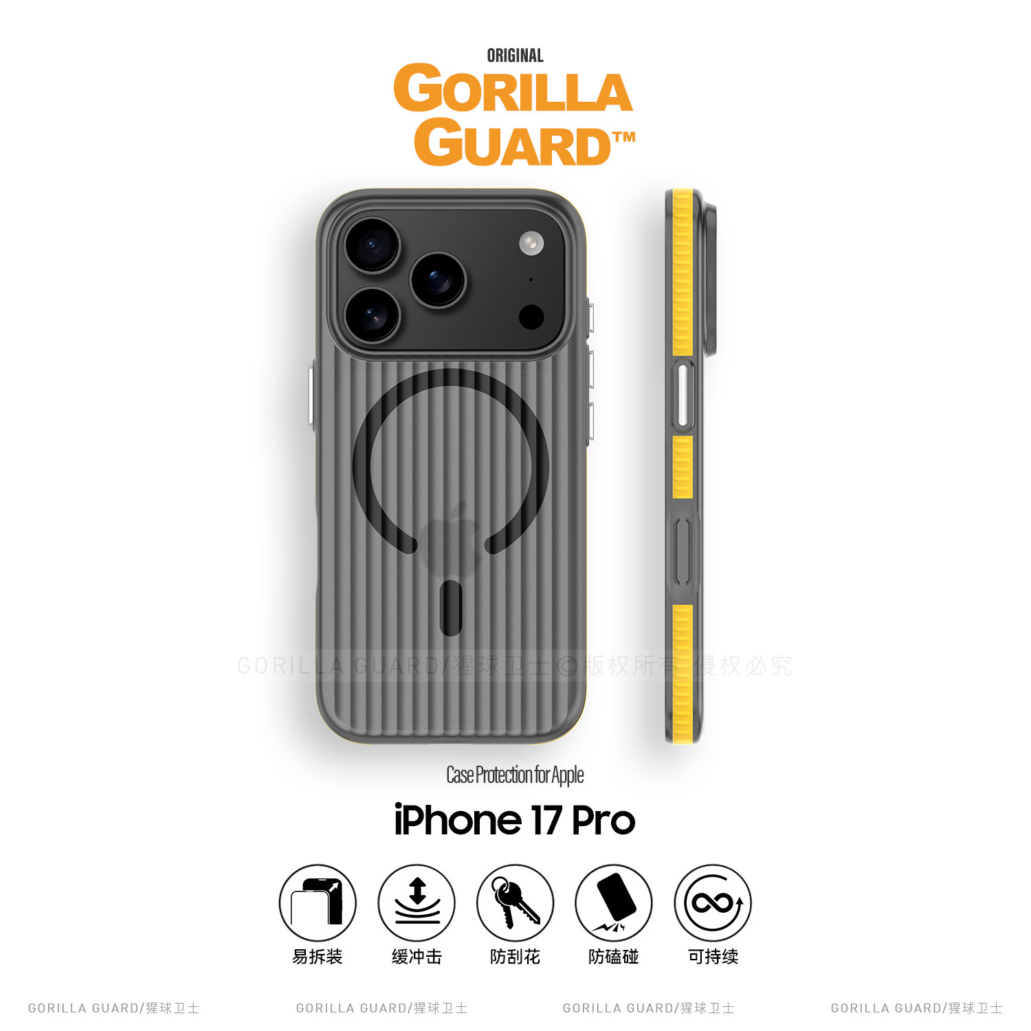 猩球卫士撞色边条适用苹果17ProMax磁吸手机壳iPhone16pro保护套17Air保护壳全包17e/16e简约15/14/13pro硬壳
