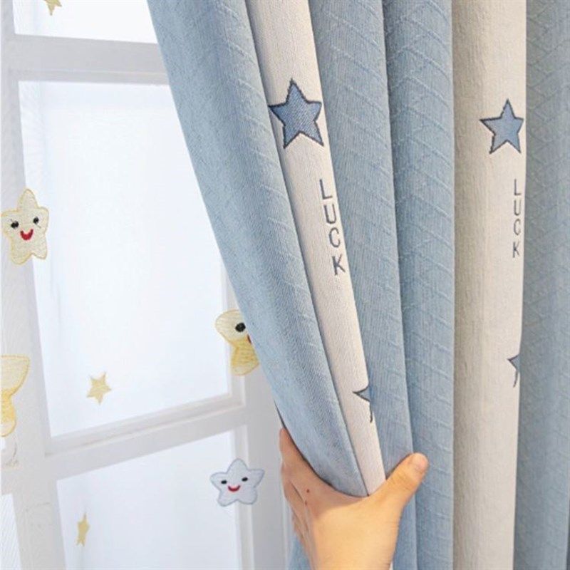 新款卡通星星无缝拼接卧室儿童房大气新款定制窗帘健康环保成品