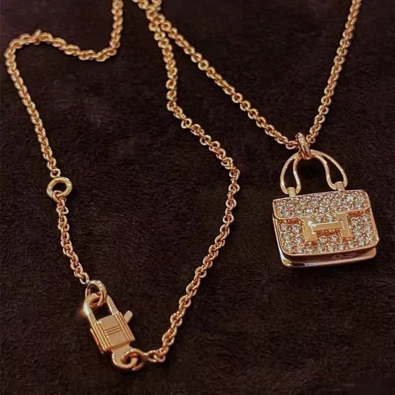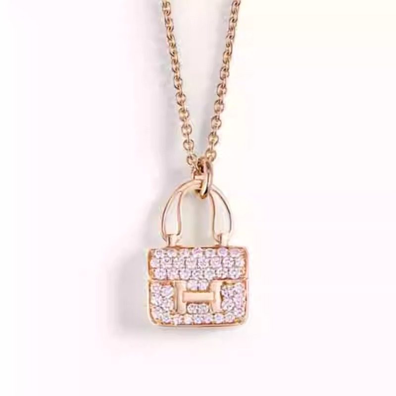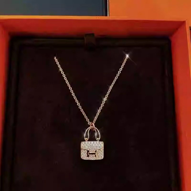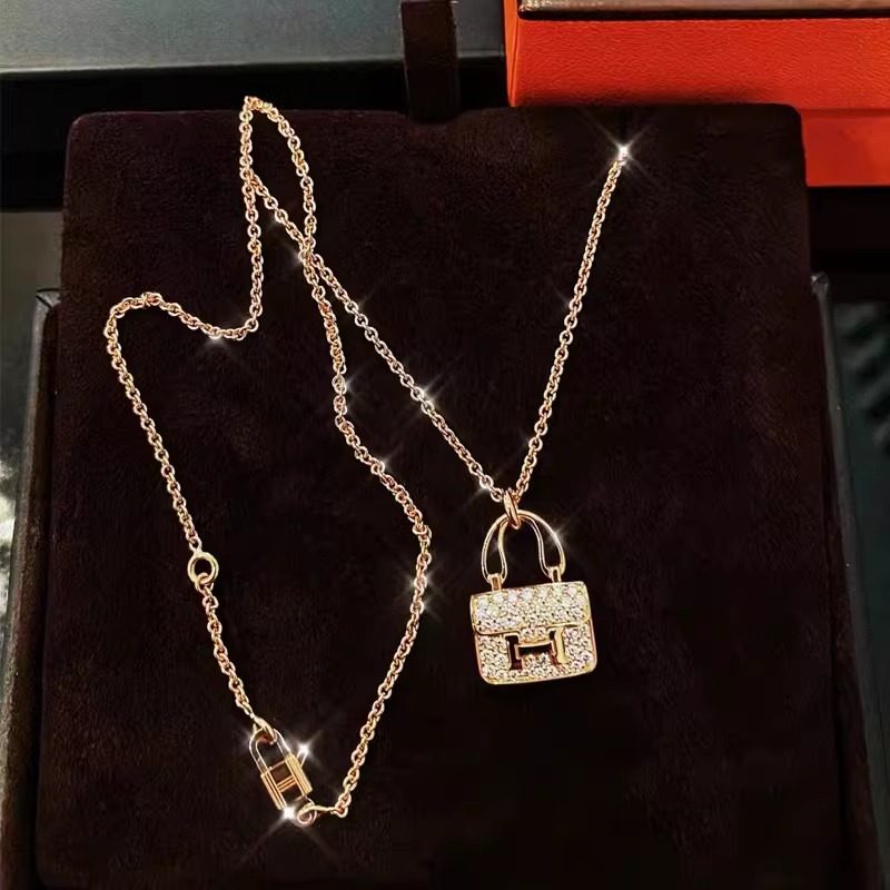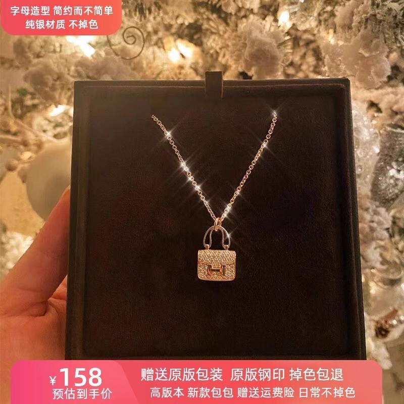 镀925银新款康康包包h字母项链女18K玫瑰金高级感锁骨链不掉色